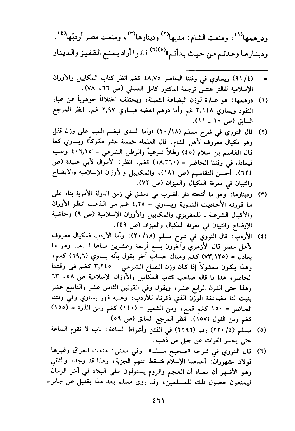 ودرهمها، ومنعت الشَّام: مديها ودينارها، ومنعت مصر أردبها. ودينارها وعدتم من حَيْثُ بدأتم " قَالُوا أَرَادَ بِمَنْع القفيز وَالدِّينَار