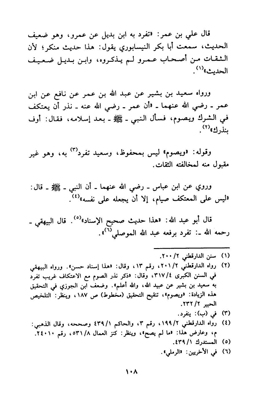 قَالَ أَبُو عبد الله: " هَذَا حَدِيث صَحِيح الْإِسْنَاد ". قَالَ الْبَيْهَقِيّ - رَحمَه الله -: تفرد بِرَفْعِهِ عبد الله الْموصِلِي ".