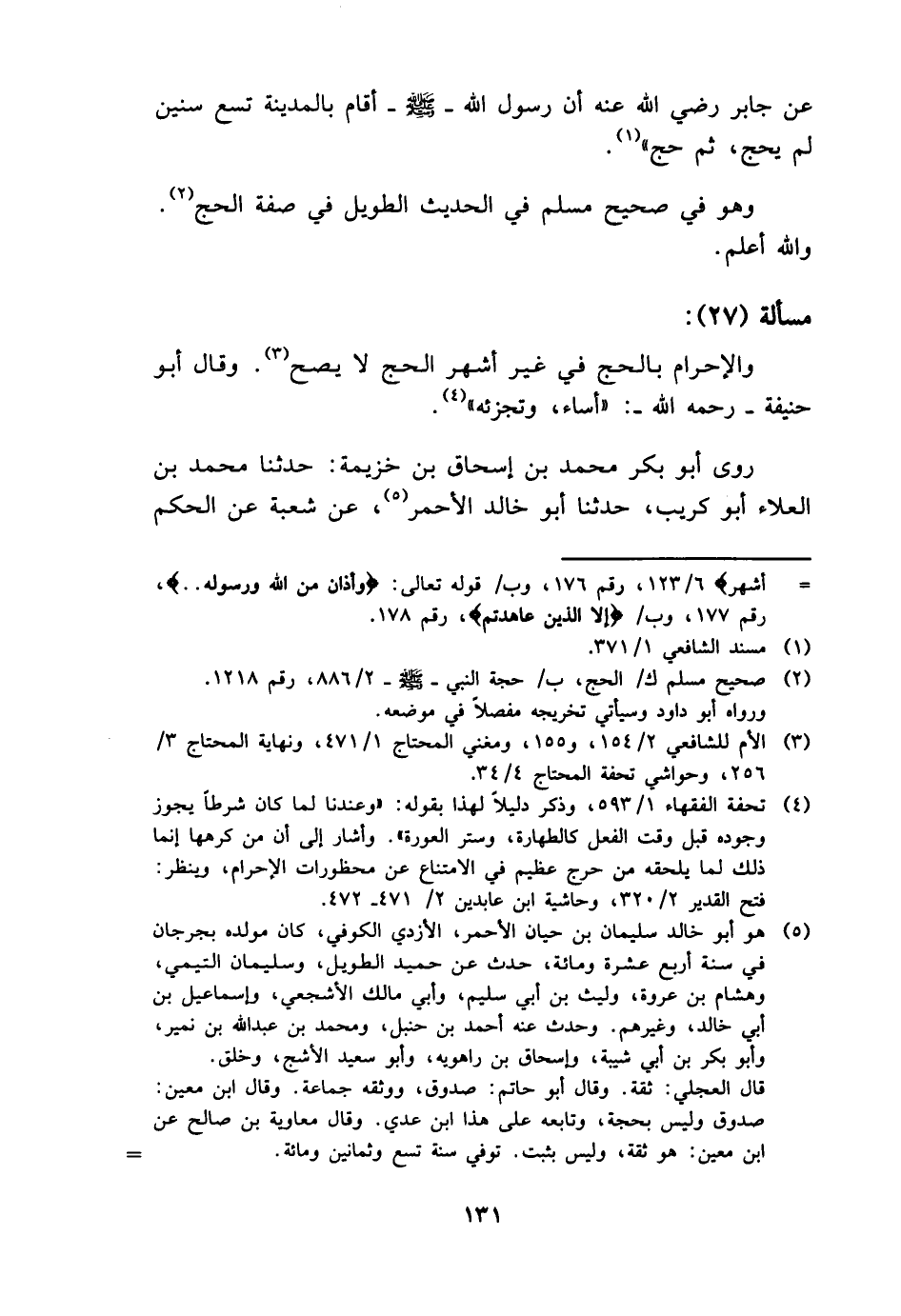 روى أَبُو بكر مُحَمَّد بن إِسْحَاق بن خُزَيْمَة: حَدثنَا مُحَمَّد بن الْعَلَاء أَبُو كريب، حَدثنَا أَبُو خَالِد الْأَحْمَر، عَن شُعْبَة عَن الحكم