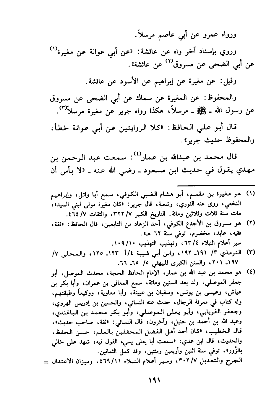 قَالَ مُحَمَّد بن عبد الله بن عمار: سَمِعت عبد الرَّحْمَن بن مهْدي يَقُول فِي حَدِيث ابْن مَسْعُود - رَضِي الله عَنهُ - " لَا بَأْس أَن