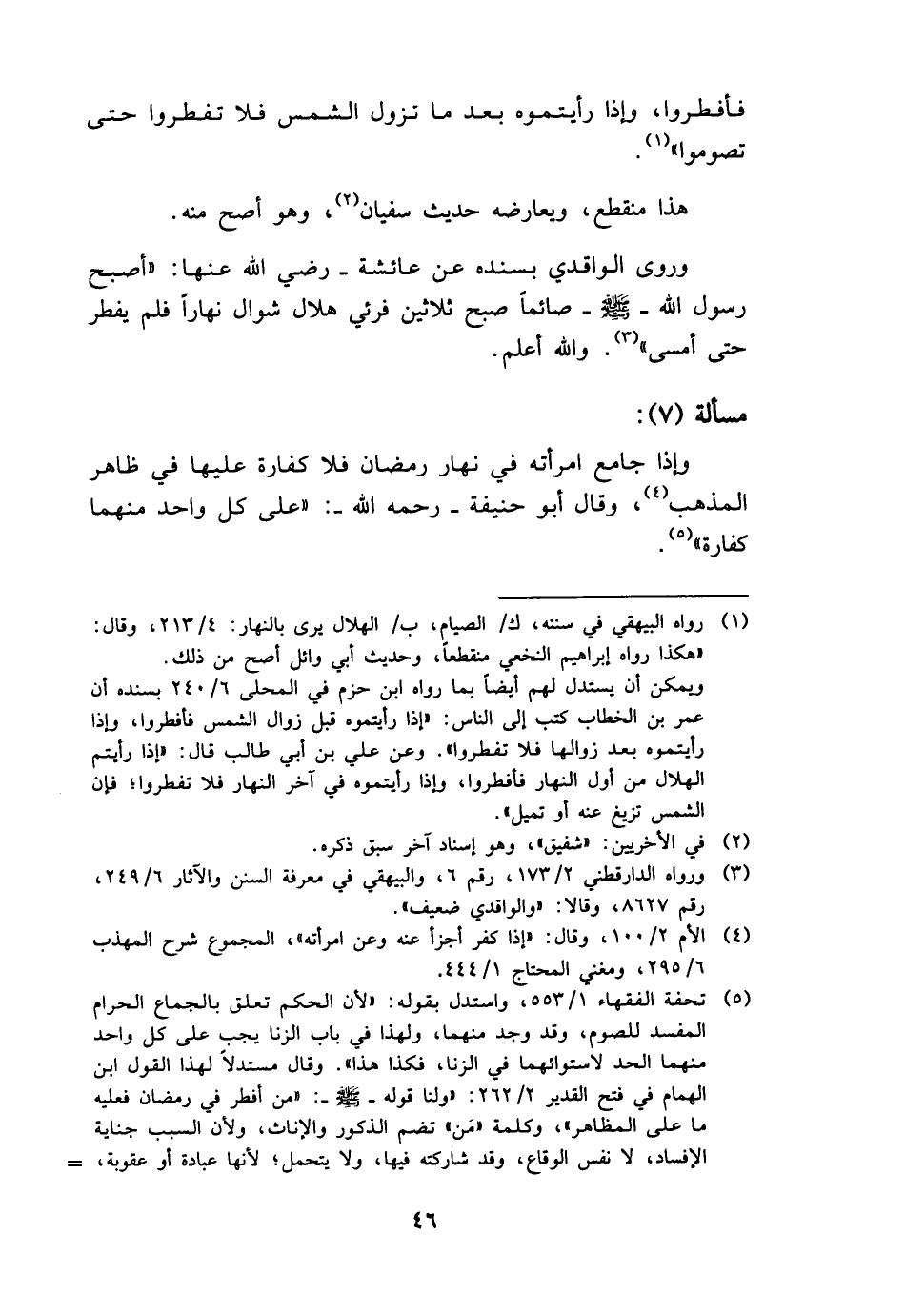 وَرُوِيَ الْوَاقِدِيّ بِسَنَدِهِ عَن عَائِشَة - رَضِي الله عَنْهَا: " أصبح رَسُول الله - صَلَّى اللَّهُ عَلَيْهِ وَسَلَّم َ - صَائِما صبح ثَلَاثِينَ فَرُئِيَ هِلَال شَوَّال نَهَارا فَلم يفْطر حَتَّى أَمْسَى ". وَالله أعلم.