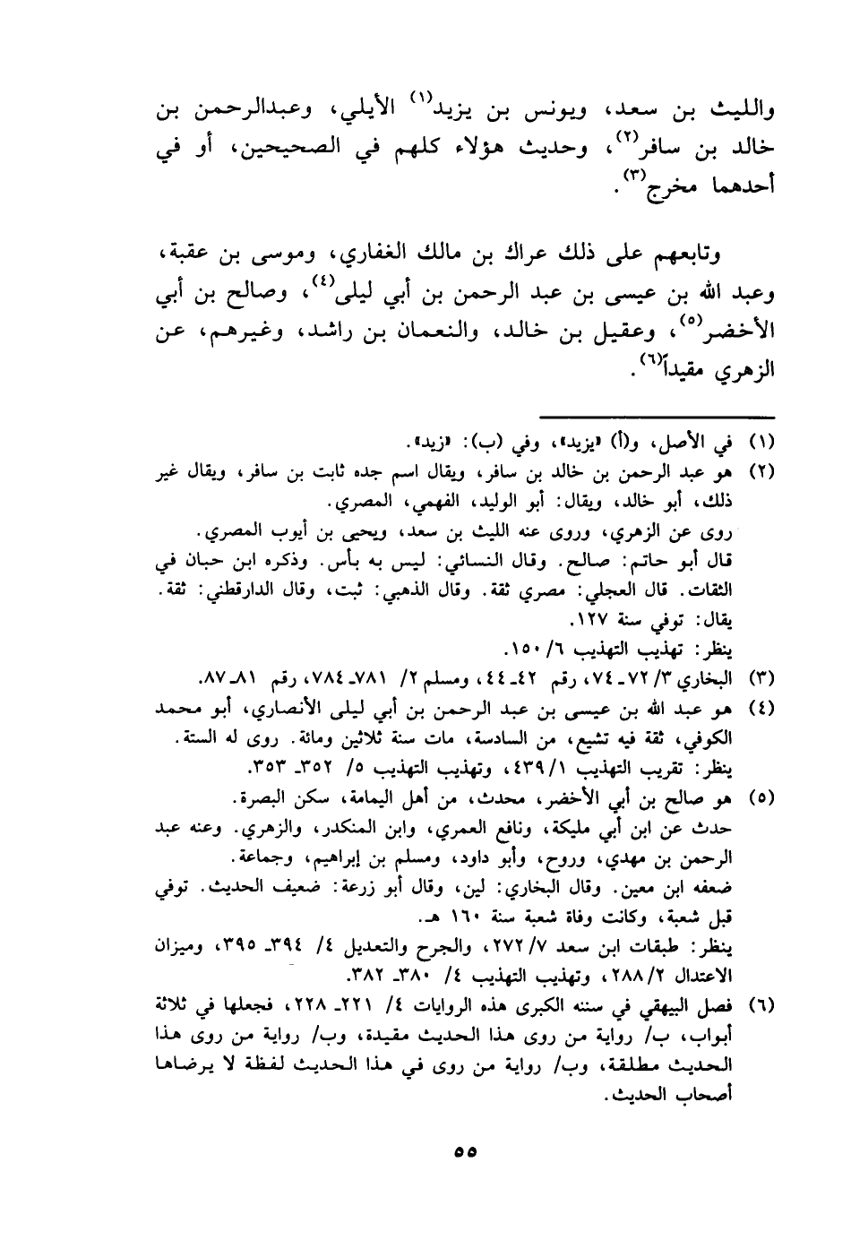 وَاللَّيْث بن سعد وَيُونُس بن يزِيد الْأَيْلِي، وَعبد الرَّحْمَن بن خَالِد بن سَافر، وَحَدِيث هَؤُلَاءِ كلهم فِي الصَّحِيحَيْنِ، أَو فِي أَحدهمَا مخرج.