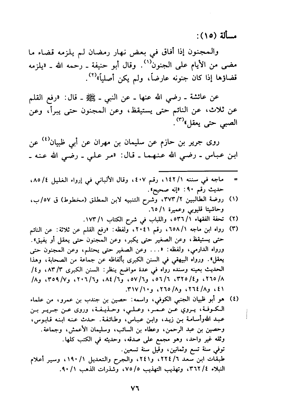 روى جرير بن حَازِم عَن سُلَيْمَان بن مهْرَان عَن أبي ظبْيَان عَن ابْن عَبَّاس - رَضِي الله عَنْهُمَا - قَالَ: " مر عَليّ - رَضِي الله عَنهُ -