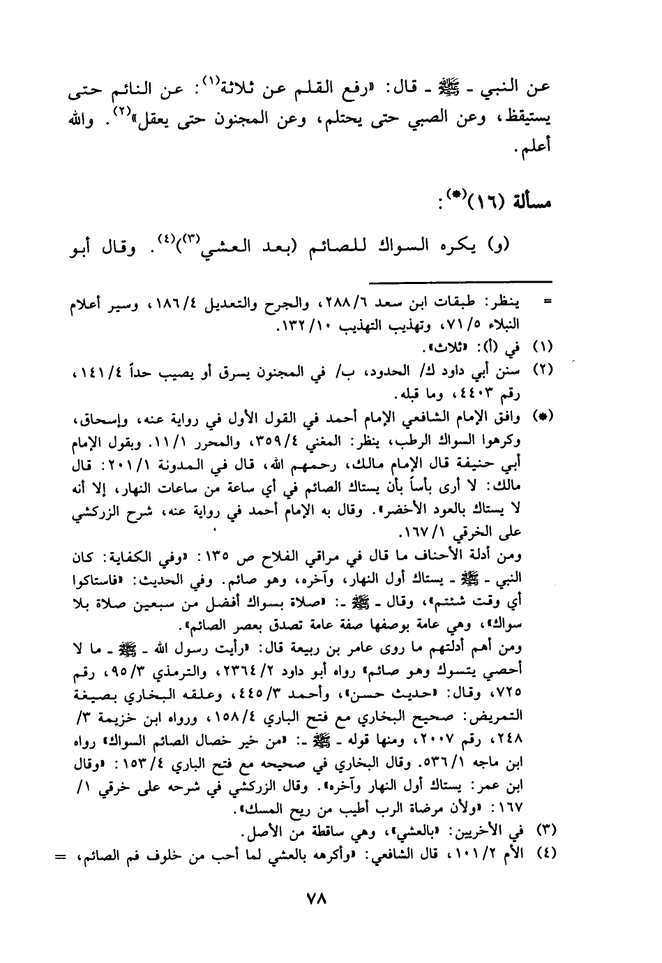 عَن النَّبِي - صَلَّى اللَّهُ عَلَيْهِ وَسَلَّم َ - قَالَ: " رفع الْقَلَم عَن ثَلَاثَة: عَن النَّائِم حَتَّى يَسْتَيْقِظ، وَعَن الصَّبِي حَتَّى يَحْتَلِم، وَعَن الْمَجْنُون حَتَّى يعقل ". وَالله أعلم.