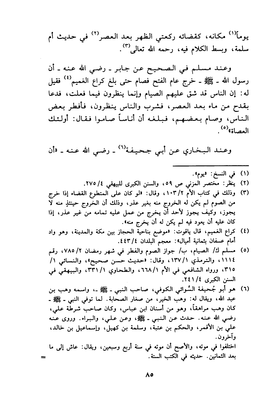 وَعند البُخَارِيّ عَن أبي جُحَيْفَة - رَضِي الله عَنهُ - " أَن