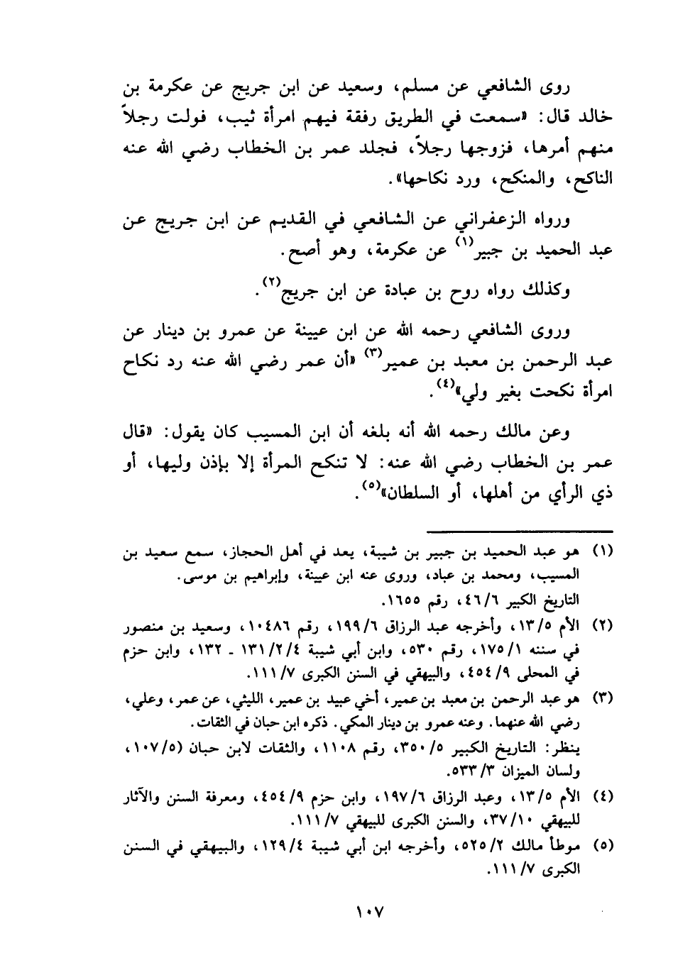 وروى الشَّافِعِي رَحمَه الله عَن ابْن عُيَيْنَة عَن عَمْرو بن دِينَار عَن عبد الرَّحْمَن بن معبد بن عُمَيْر " أَن عمر رَضِي الله عَنهُ رد نِكَاح امْرَأَة نكحت بِغَيْر ولي ".
