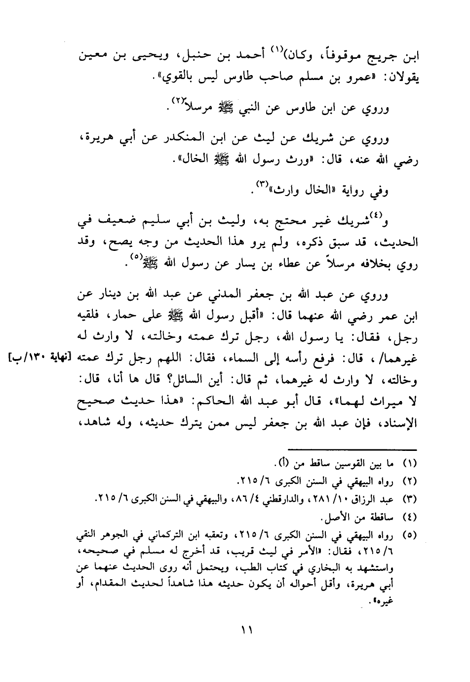 وَرُوِيَ عَن شريك عَن لَيْث عَن ابْن الْمُنْكَدر عَن أبي هُرَيْرَة، رَضِي الله عَنهُ، قَالَ: (ورث رَسُول الله - صَلَّى اللَّهُ عَلَيْهِ وَسَلَّم َ - الْخَال) .