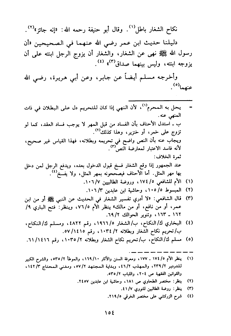 نِكَاح الشّغَار بَاطِل. وَقَالَ أَبُو حنيفَة رَحمَه الله: " إِنَّه جَائِز ".