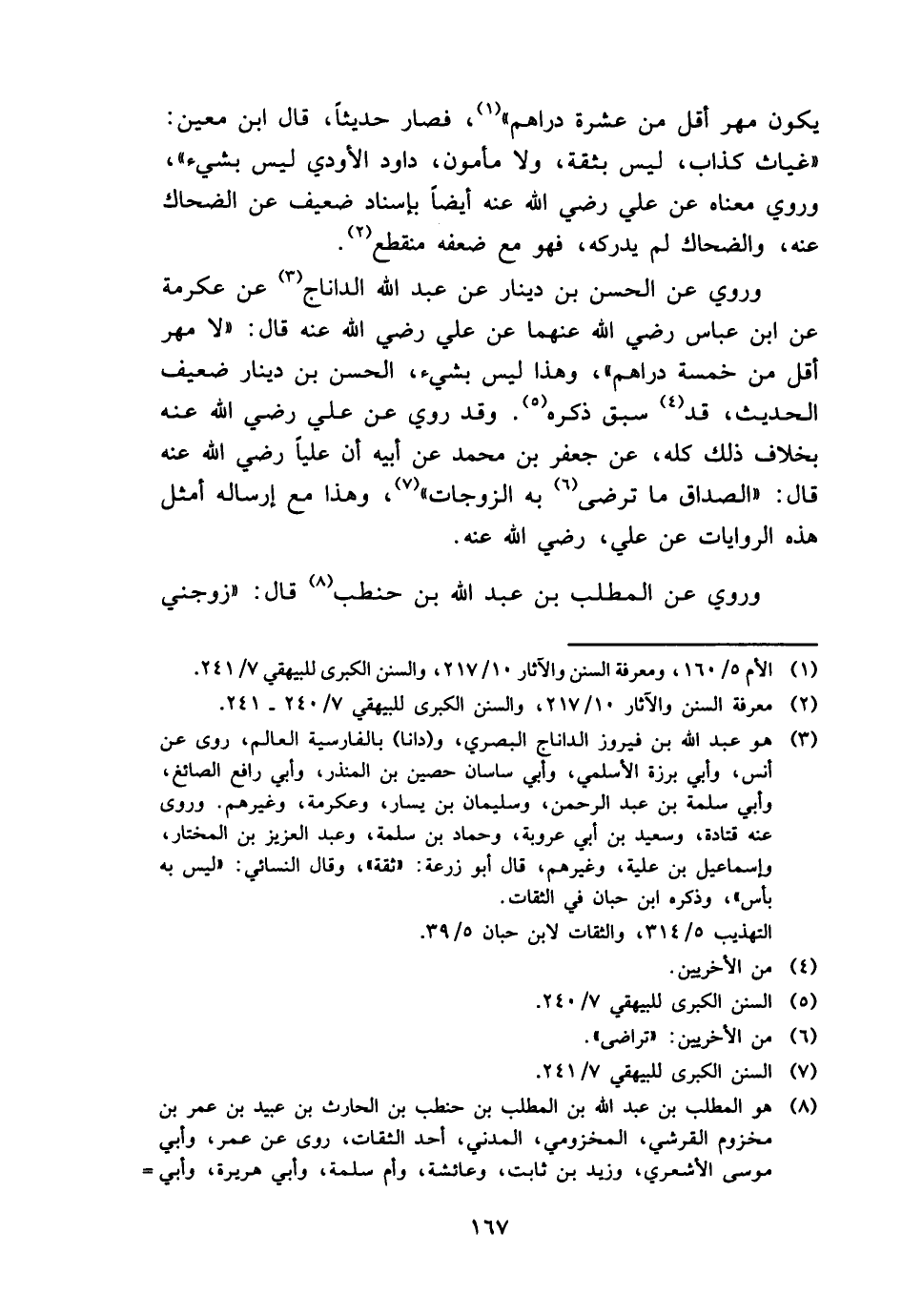 يكون مهر أقل من عشرَة دَرَاهِم "، فَصَارَ حَدِيثا، قَالَ ابْن معِين: " غياث كَذَّاب، لَيْسَ بِثِقَة، وَلَا مَأْمُون، دَاوُد الأودي لَيْسَ بِشَيْء "، وَرُوِيَ مَعْنَاهُ عَن عَليّ رَضِي الله عَنهُ أَيْضا بِإِسْنَاد ضَعِيف عَن الضَّحَّاك عَنهُ، وَالضَّحَّاك لم يُدْرِكهُ، فَهُوَ مَعَ ضعفه مُنْقَطع.