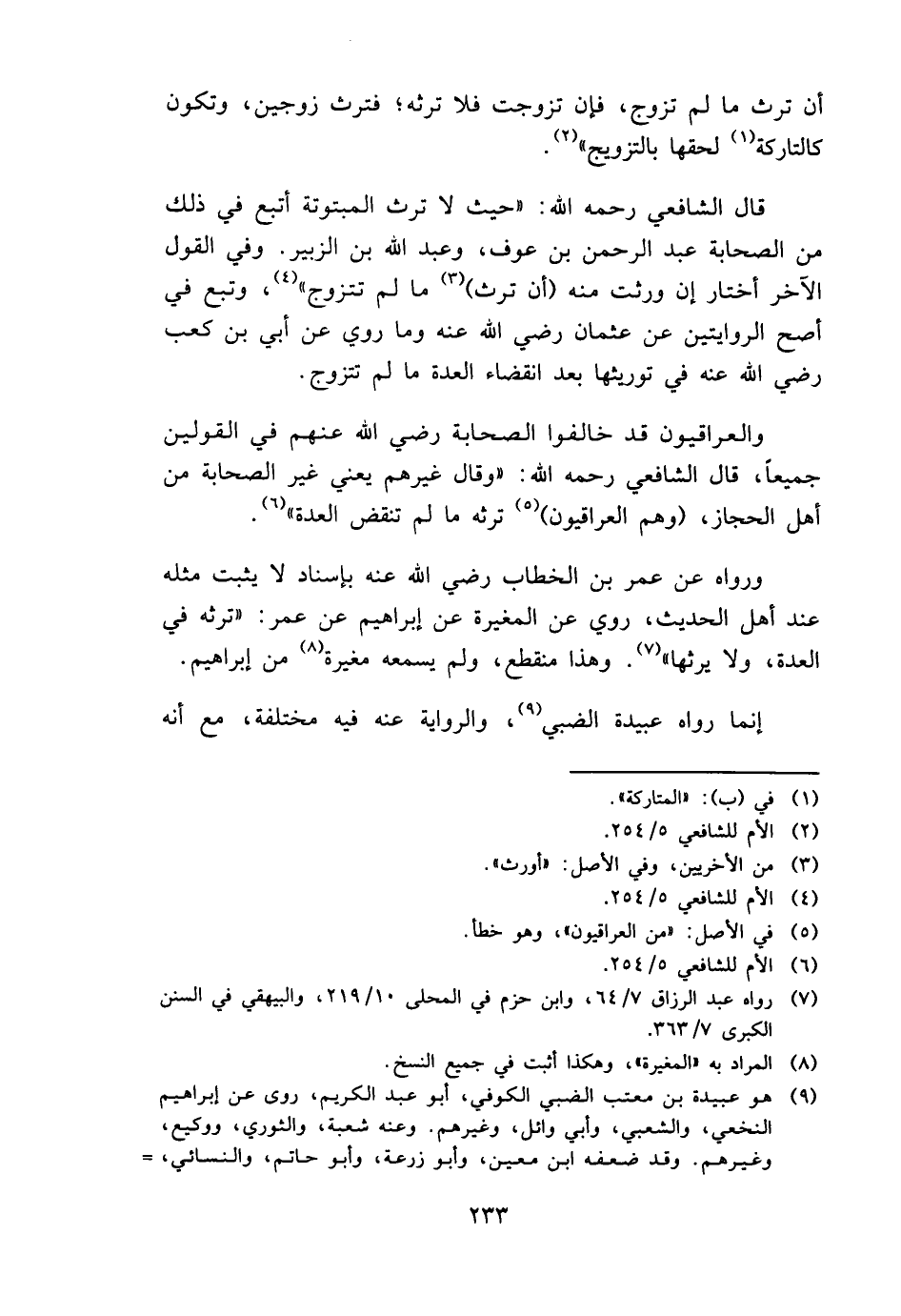 والعراقيون قد خالفوا الصَّحَابَة رَضِي الله عَنْهُم فِي الْقَوْلَيْنِ جَمِيعًا، قَالَ الشَّافِعِي رَحمَه الله: " وَقَالَ غَيرهم يَعْنِي غير الصَّحَابَة من أهل الْحجاز، (وهم الْعِرَاقِيُّونَ) تَرثه مَا لم تنقض الْعدة ".