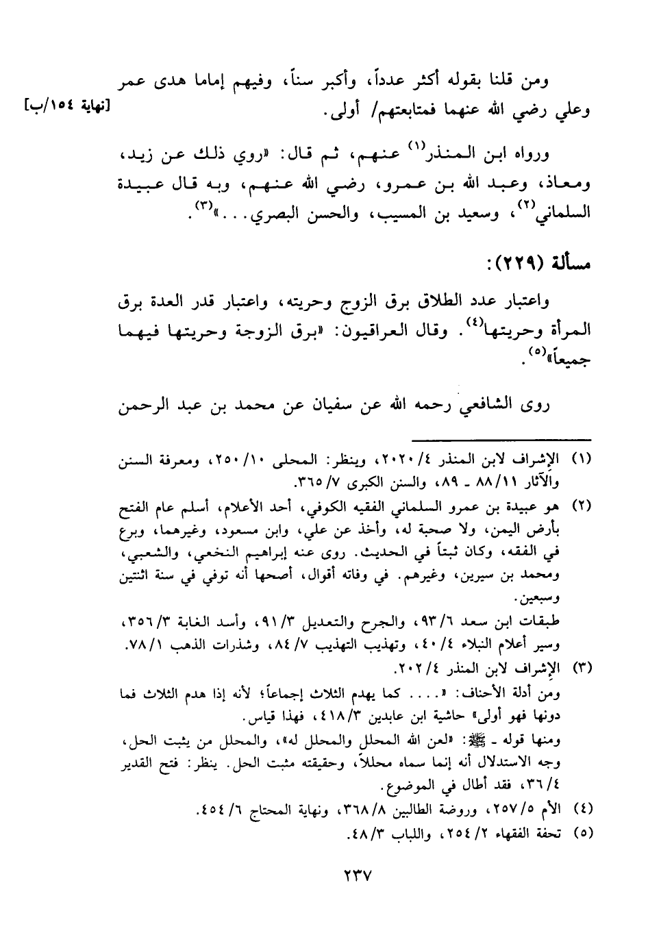 وَرَوَاهُ ابْن الْمُنْذر عَنْهُم، ثمَّ قَالَ: " رُوِيَ ذَلِك عَن زيد، ومعاذ، وَعبد الله بن عَمْرو، رَضِي الله عَنْهُم، وَبِه قَالَ عُبَيْدَة السَّلمَانِي، وَسَعِيد بن الْمسيب، وَالْحسن الْبَصْرِيّ ... ".