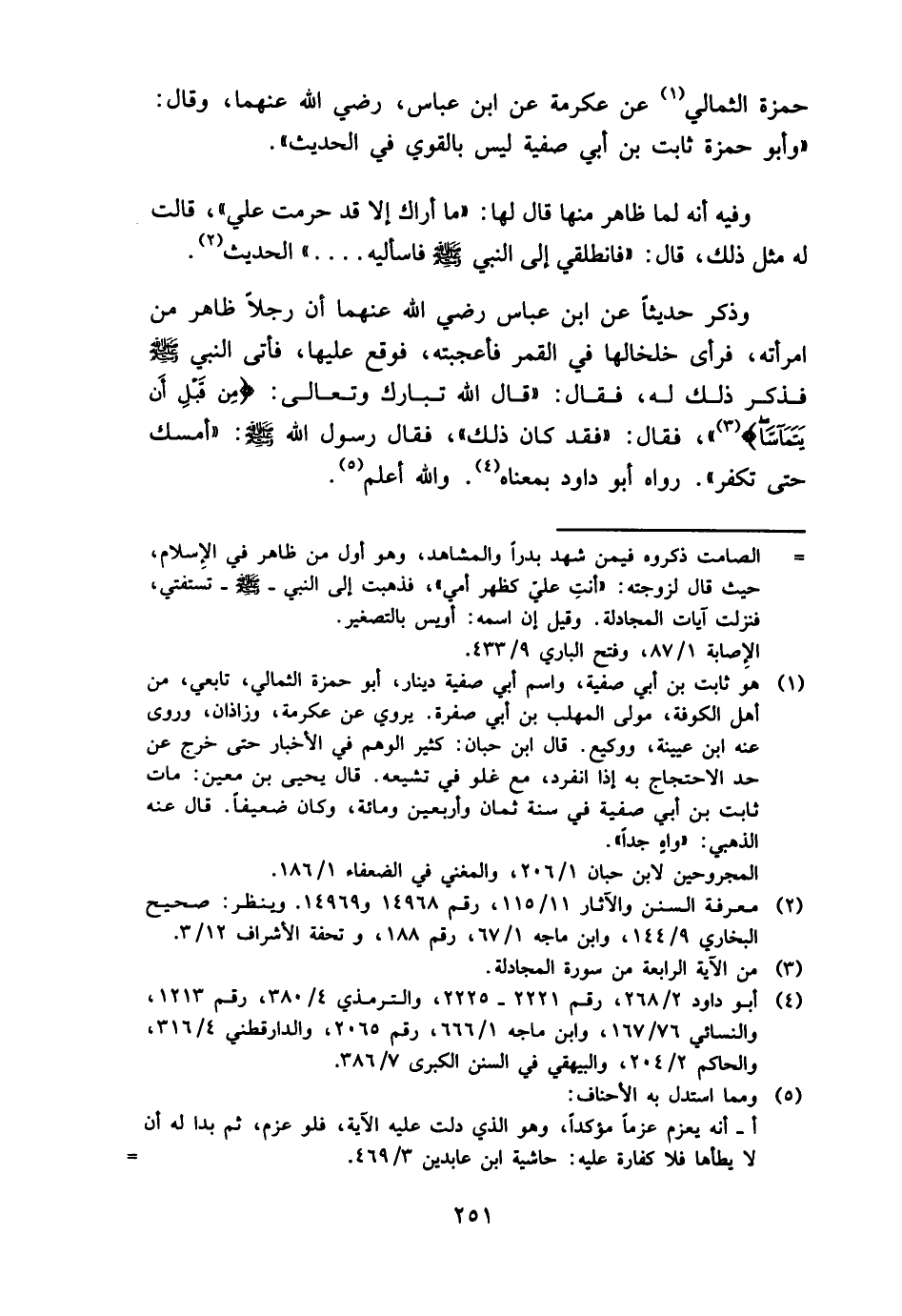 وَذكر حَدِيثا عَن ابْن عَبَّاس رَضِي الله عَنْهُمَا أَن رجلا ظَاهر من امْرَأَته، فَرَأى خلْخَالهَا فِي الْقَمَر فَأَعْجَبتهُ، فَوَقع عَلَيْهَا، فَأتى النَّبِي - صَلَّى اللَّهُ عَلَيْهِ وَسَلَّم َ - فَذكر ذَلِك لَهُ، فَقَالَ: " فقد كَانَ ذَلِك "، فَقَالَ رَسُول الله - صَلَّى اللَّهُ عَلَيْهِ وَسَلَّم َ -: " أمسك حَتَّى تكفر ". رَوَاهُ أَبُو دَاوُد بِمَعْنَاهُ. وَالله أعلم.