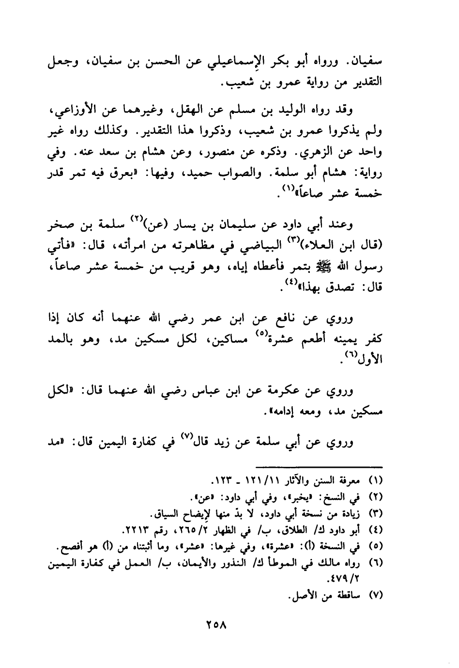 وَقد رَوَاهُ الْوَلِيد بن مُسلم عَن الهقل، وَغَيرهمَا عَن الْأَوْزَاعِيّ، وَلم يذكرُوا عَمْرو بن شُعَيْب، وَذكروا هَذَا التَّقْدِير. وَكَذَلِكَ رَوَاهُ غير وَاحِد عَن الزُّهْرِيّ. وَذكره عَن مَنْصُور، وَعَن هِشَام بن سعد عَنهُ. وَفِي رِوَايَة: هِشَام أَبُو سَلمَة. وَالصَّوَاب حميد، وفيهَا: " بعرق فِيهِ تمر قدر خَمْسَة عشر صَاعا ".