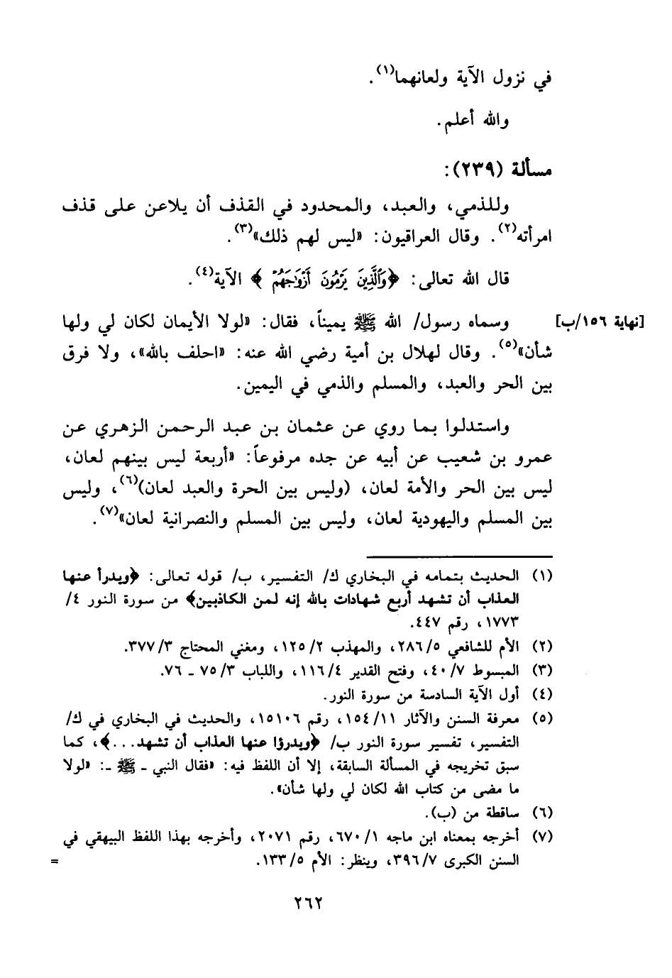 وَاسْتَدَلُّوا بِمَا رُوِيَ عَن عُثْمَان بن عبد الرَّحْمَن الزُّهْرِيّ عَن عَمْرو بن شُعَيْب عَن أَبِيه عَن جده مَرْفُوعا: " أَرْبَعَة لَيْسَ بَينهم لعان، لَيْسَ بَين الْحر وَالْأمة لعان، (وَلَيْسَ بَين الْحرَّة وَالْعَبْد لعان) ، وَلَيْسَ بَين الْمُسلم واليهودية لعان، وَلَيْسَ بَين الْمُسلم والنصرانية لعان ".