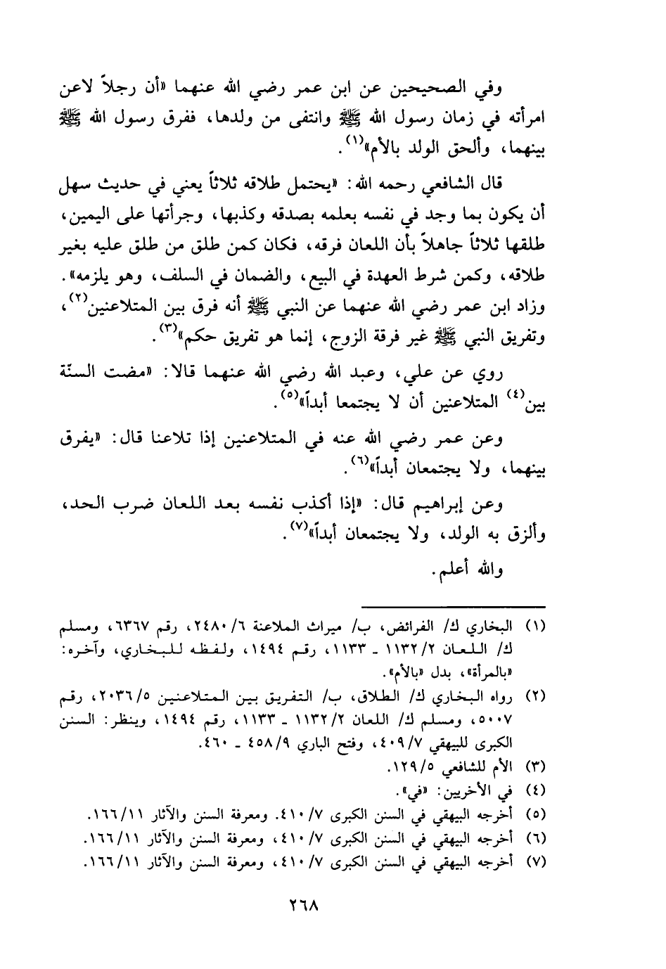 قَالَ الشَّافِعِي رَحمَه الله: " يحْتَمل طَلَاقه ثَلَاثًا يَعْنِي فِي حَدِيث سهل أَن يكون بِمَا وجد فِي نَفسه بِعِلْمِهِ بصدقه وكذبها، وجرأتها على الْيَمين، طَلقهَا ثَلَاثًا جَاهِلا بِأَن اللّعان فرقه، فَكَانَ كمن طلق من طلق عَلَيْهِ بِغَيْر طَلَاقه، وَكَمن شَرط الْعهْدَة فِي البيع، وَالضَّمان فِي السّلف، وَهُوَ يلْزمه ". وَزَاد ابْن عمر رَضِي الله عَنْهُمَا عَن النَّبِي - صَلَّى اللَّهُ عَلَيْهِ وَسَلَّم َ - أَنه فرق بَين المتلاعنين، وتفريق النَّبِي - صَلَّى اللَّهُ عَلَيْهِ وَسَلَّم َ - غير فرقة الزَّوْج، إِنَّمَا هُوَ تَفْرِيق حكم ".