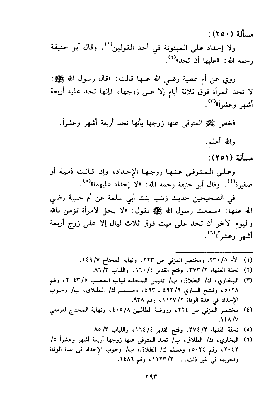 فخض - صَلَّى اللَّهُ عَلَيْهِ وَسَلَّم َ - الْمُتَوفَّى عَنْهَا زَوجهَا بِأَنَّهَا تحد أَرْبَعَة أشهر وَعشرا.