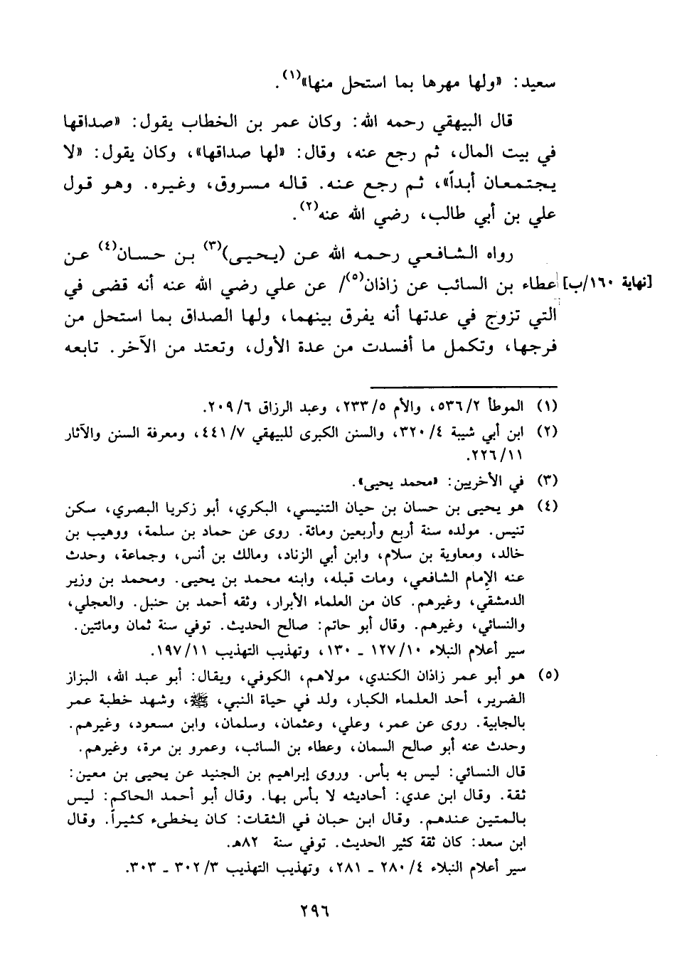 قَالَ الْبَيْهَقِيّ رَحمَه الله: وَكَانَ عمر بن الْخطاب يَقُول: " صَدَاقهَا فِي بَيت المَال، ثمَّ رَجَعَ عَنهُ، وَقَالَ: " لَهَا صَدَاقهَا "، وَكَانَ يَقُول: " لَا يَجْتَمِعَانِ أبدا "، ثمَّ رَجَعَ عَنهُ. قَالَه مَسْرُوق، وَغَيره. وَهُوَ قَول عَليّ بن أبي طَالب، رَضِي الله عَنهُ.