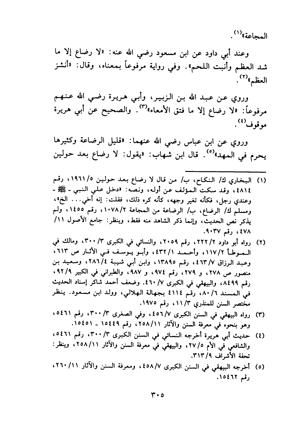 وَرُوِيَ عَن عبد الله بن الزبير، وَأبي هُرَيْرَة رَضِي الله عَنْهُم مَرْفُوعا: " لَا رضَاع إِلَّا مَا فتق الأمعاء ". وَالصَّحِيح عَن أبي هُرَيْرَة مَوْقُوف.