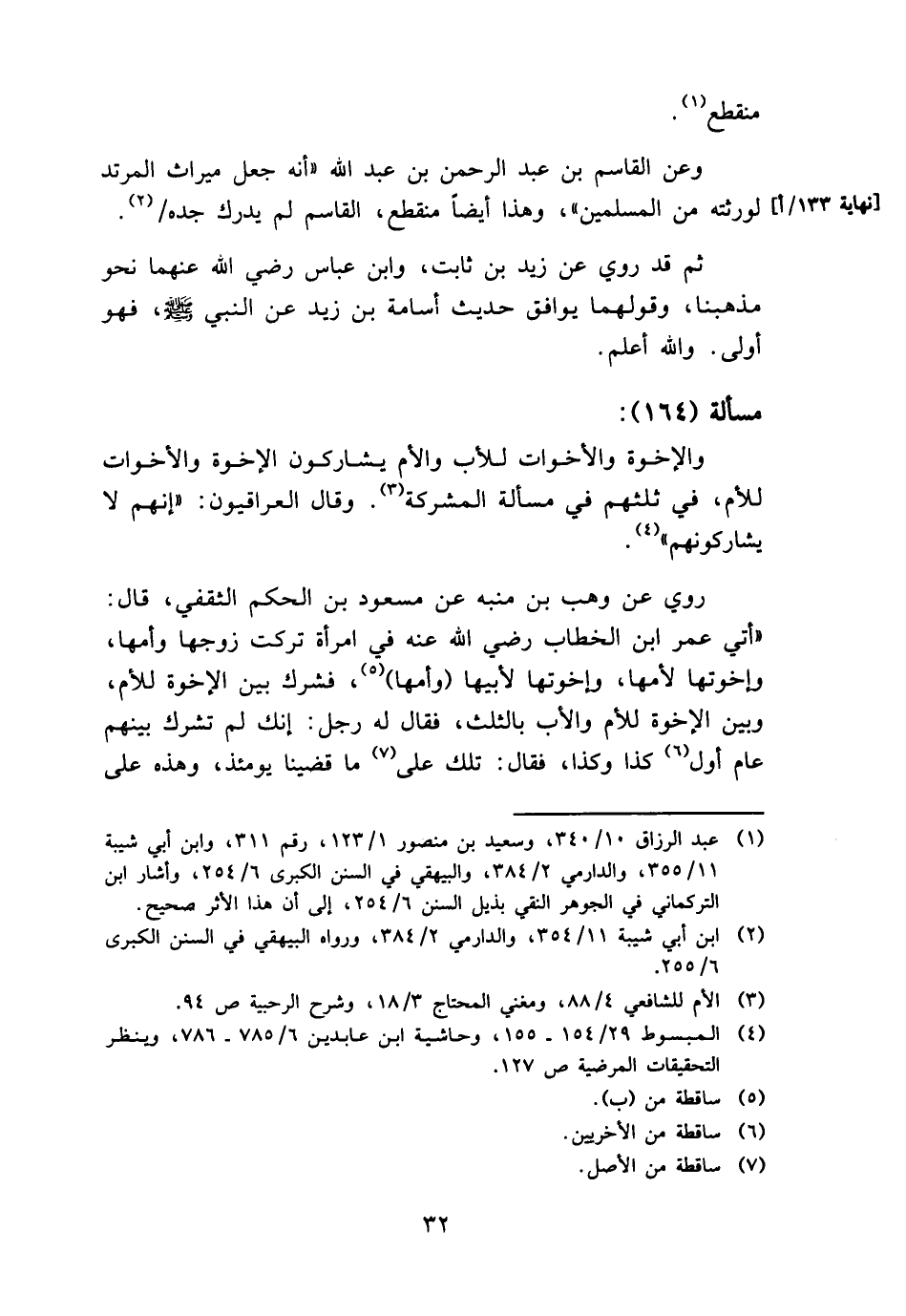 ثمَّ قد رُوِيَ عَن زيد بن ثَابت، وَابْن عَبَّاس رَضِي الله عَنْهُمَا نَحْو مَذْهَبنَا، وقولهما يُوَافق حَدِيث أُسَامَة بن زيد عَن النَّبِي - صَلَّى اللَّهُ عَلَيْهِ وَسَلَّم َ -، فَهُوَ أولى. وَالله أعلم.