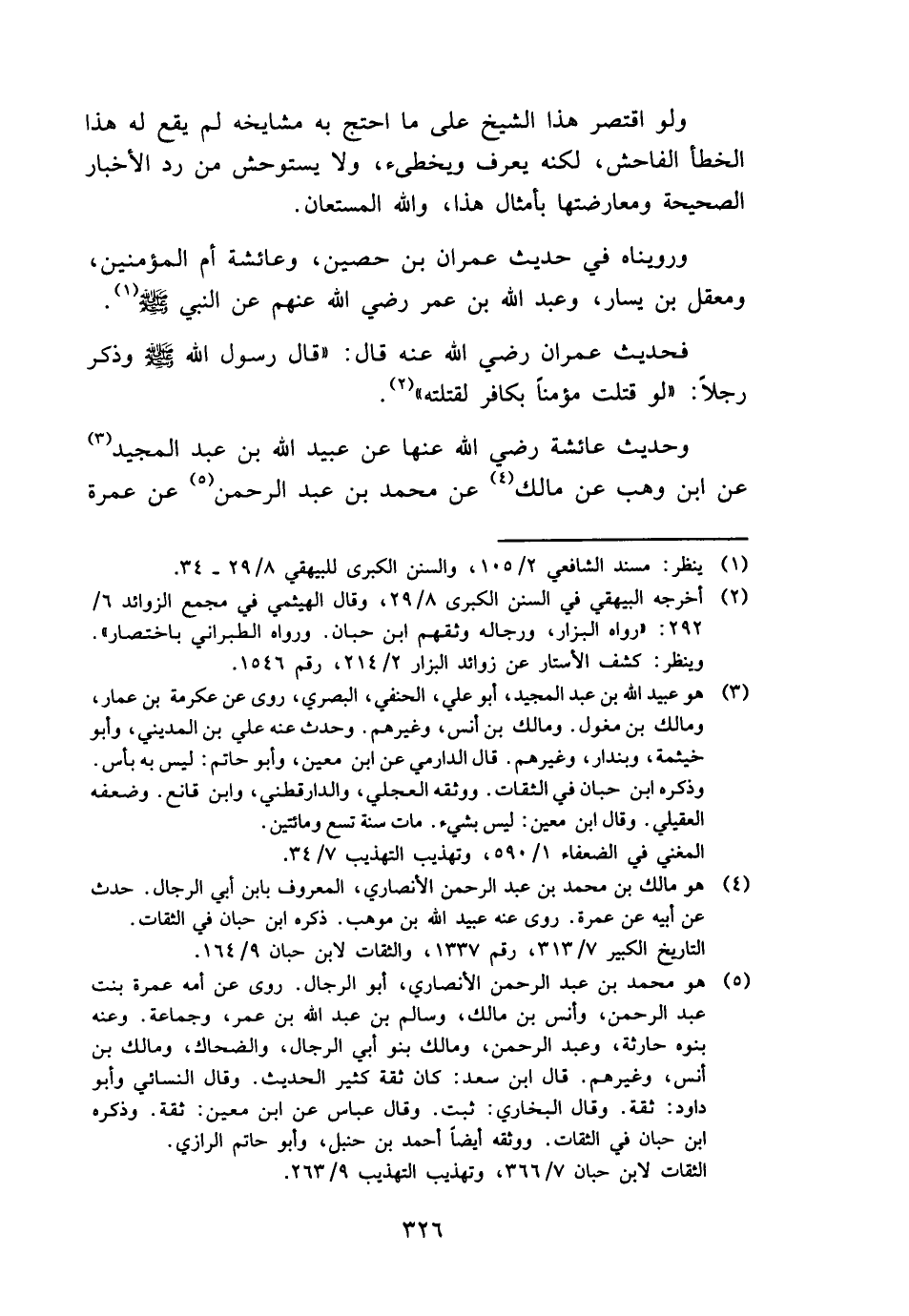 وَلَو اقْتصر هَذَا الشَّيْخ على مَا احْتج بِهِ مشايخه لم يَقع لَهُ هَذَا الْخَطَأ الْفَاحِش، لكنه يعرف ويخطئ، وَلَا يستوحش من رد الْأَخْبَار الصَّحِيحَة ومعارضتها بأمثال هَذَا، وَالله الْمُسْتَعَان.