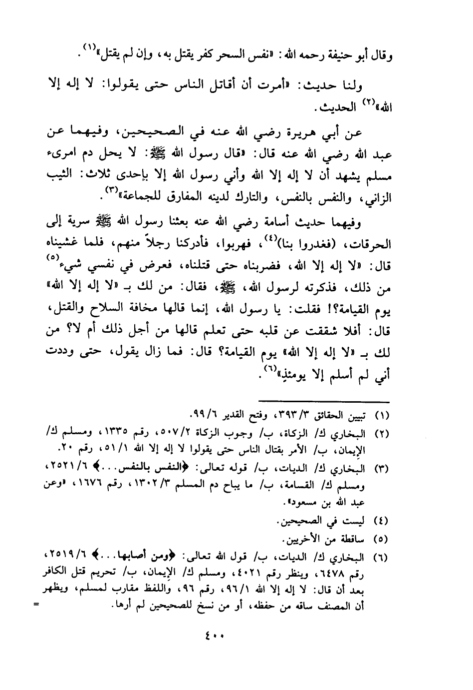 عَن أبي هُرَيْرَة رَضِي الله عَنهُ فِي الصَّحِيحَيْنِ، وَفِيهِمَا عَن عبد الله رَضِي الله عَنهُ قَالَ: " قَالَ رَسُول الله - صَلَّى اللَّهُ عَلَيْهِ وَسَلَّم َ -: لَا يحل دم امْرِئ مُسلم يشْهد أَن لَا إِلَه إِلَّا الله وَأَنِّي رَسُول الله إِلَّا بِإِحْدَى ثَلَاث: الثّيّب الزَّانِي، وَالنَّفس بِالنَّفسِ، والتارك لدينِهِ المفارق للْجَمَاعَة ".