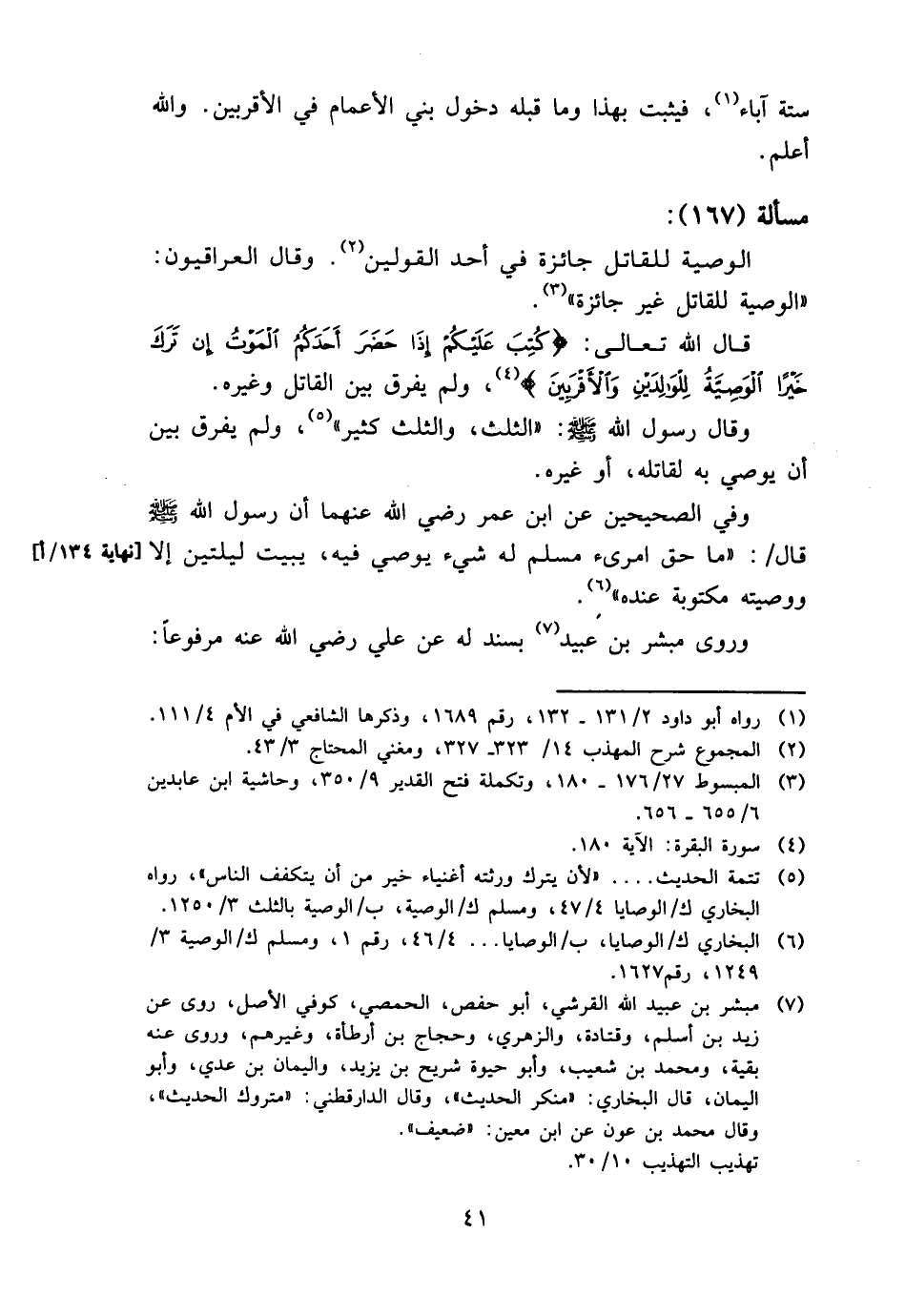 الْوَصِيَّة للْقَاتِل جَائِزَة فِي أحد الْقَوْلَيْنِ. وَقَالَ الْعِرَاقِيُّونَ: " الْوَصِيَّة للْقَاتِل غير جَائِزَة ".