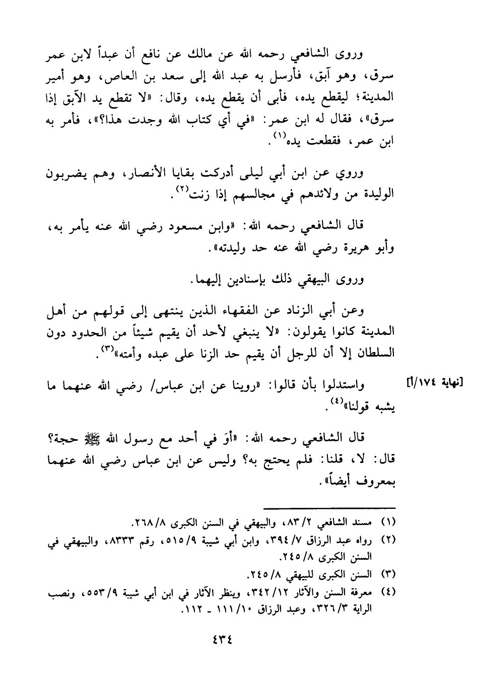 قَالَ الشَّافِعِي رَحمَه الله: " وَابْن مَسْعُود رَضِي الله عَنهُ يَأْمر بِهِ، وَأَبُو هُرَيْرَة رَضِي الله عَنهُ حد وليدته ".
