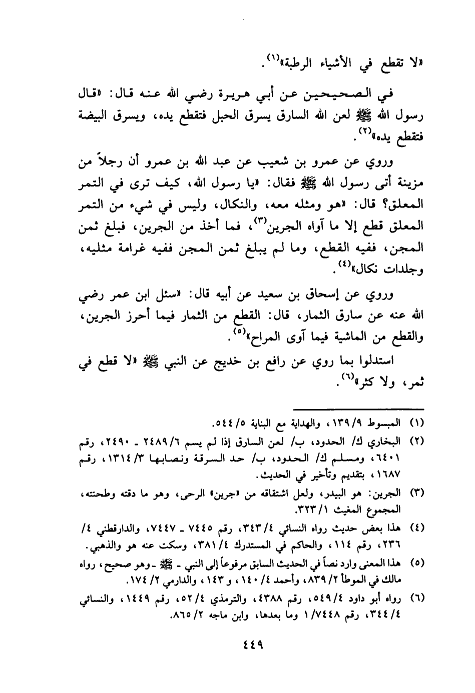 فِي الصَّحِيحَيْنِ عَن أبي هُرَيْرَة رَضِي الله عَنهُ قَالَ: " قَالَ رَسُول الله - صَلَّى اللَّهُ عَلَيْهِ وَسَلَّم َ - لعن الله السَّارِق يسرق الْحَبل فتقطع يَده، وَيسْرق الْبَيْضَة فتقطع يَده ".