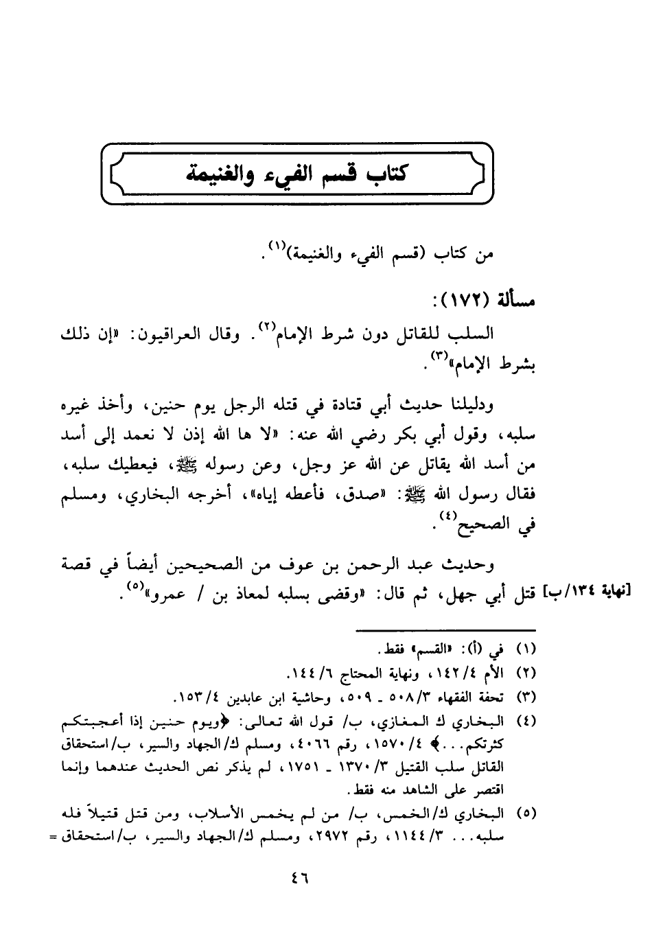 من كتاب (قسم الْفَيْء وَالْغنيمَة) .