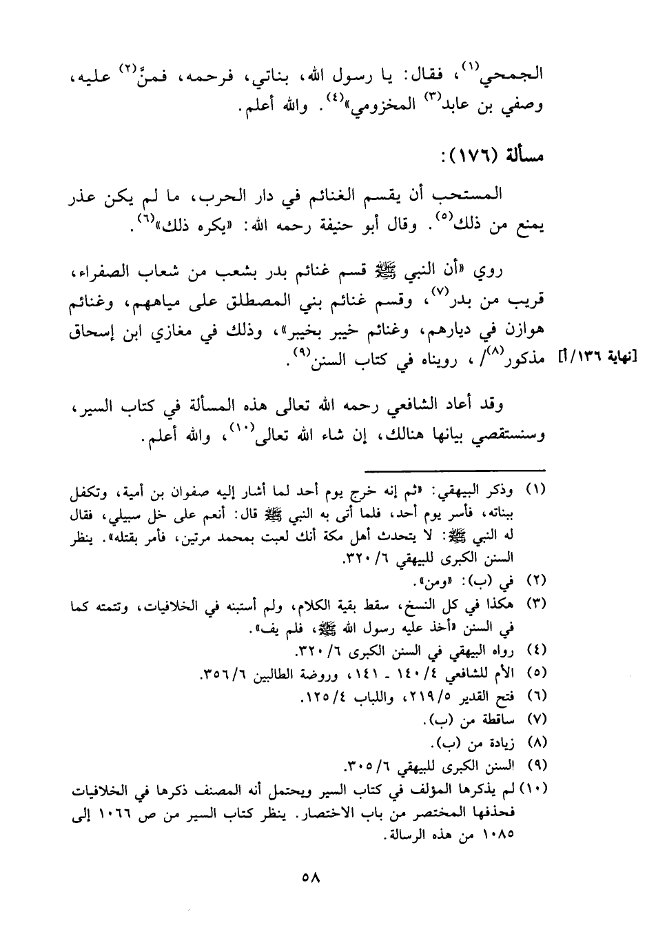وَقد أعَاد الشَّافِعِي رَحمَه الله تَعَالَى هَذِه الْمَسْأَلَة فِي كتاب السّير، وسنستقصي بَيَانهَا هُنَالك، إِن شَاءَ الله تَعَالَى، وَالله أعلم.