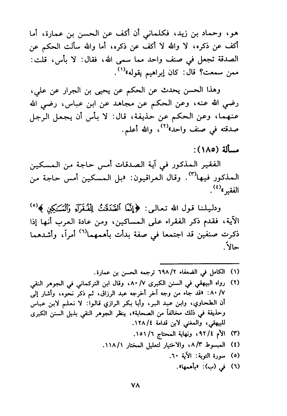 وَهَذَا الْحسن يحدث عَن الحكم عَن يحيى بن الجرار عَن عَليّ، رَضِي الله عَنهُ، وَعَن الحكم عَن مُجَاهِد عَن ابْن عَبَّاس، رَضِي الله عَنْهُمَا، وَعَن الحكم عَن حُذَيْفَة، قَالَ: لَا بَأْس أَن يَجْعَل الرجل صدقته فِي صنف وَاحِد "، وَالله أعلم.