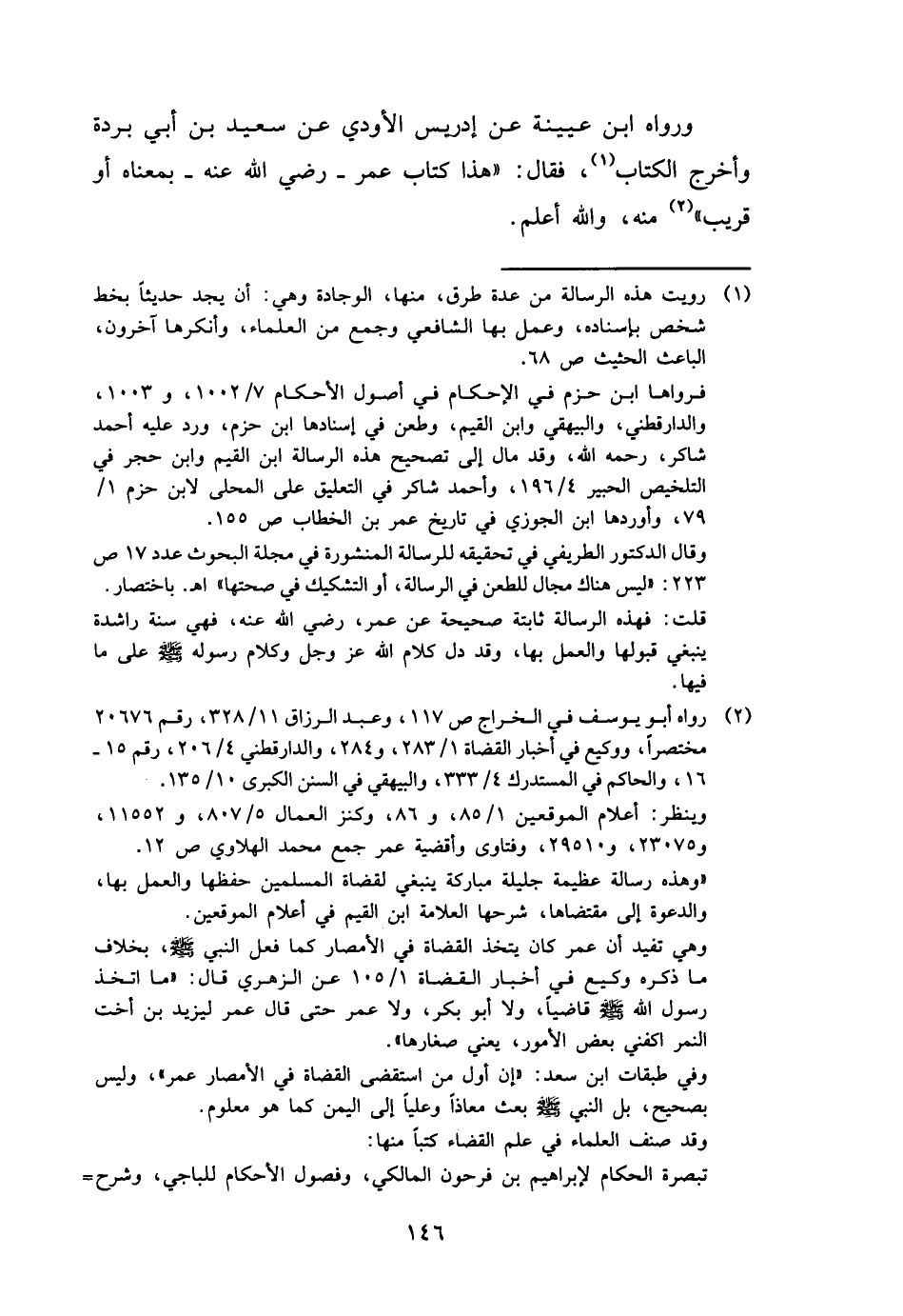 وَرَوَاهُ ابْن عُيَيْنَة عَن إِدْرِيس الأودي عَن سعيد بن أبي بردة وَأخرج الْكتاب، فَقَالَ: " هَذَا كتاب عمر - رَضِي الله عَنهُ - بِمَعْنَاهُ أَو قريب " مِنْهُ، وَالله أعلم.