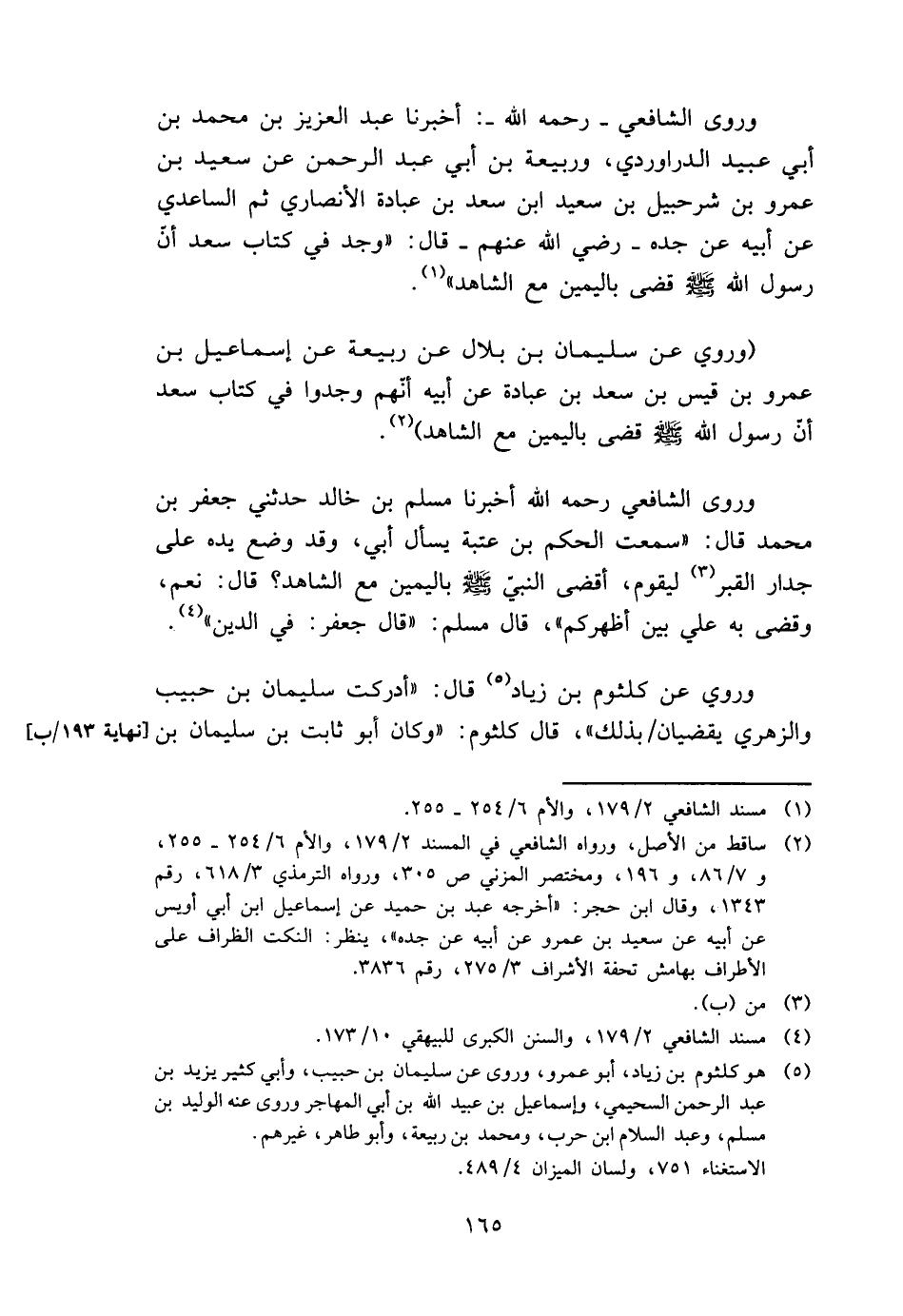 (وَرُوِيَ عَن سُلَيْمَان بن بِلَال عَن ربيعَة عَن إِسْمَاعِيل بن عَمْرو بن قيس بن سعد بن عبَادَة عَن أَبِيه أنّهم وجدوا فِي كتاب سعد أنّ رَسُول الله - صَلَّى اللَّهُ عَلَيْهِ وَسَلَّم َ - قضى بِالْيَمِينِ مَعَ الشَّاهِد) .