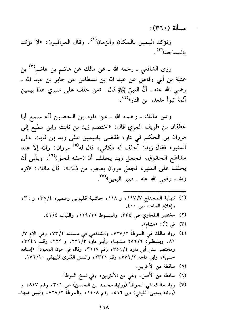 وتؤكد الْيَمين بِالْمَكَانِ وَالزَّمَان. وَقَالَ الْعِرَاقِيُّونَ: " لَا تؤكد بالمساجد ".