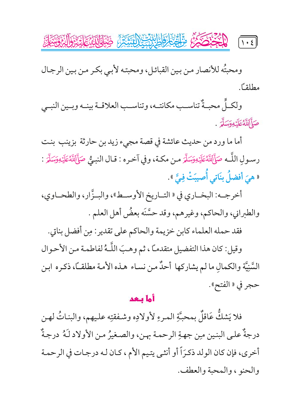 ولكلٍّ محبةٌ تناسب مكانته، وتناسب العلاقة بينه وبين النبي - صلى الله عليه وسلم -.