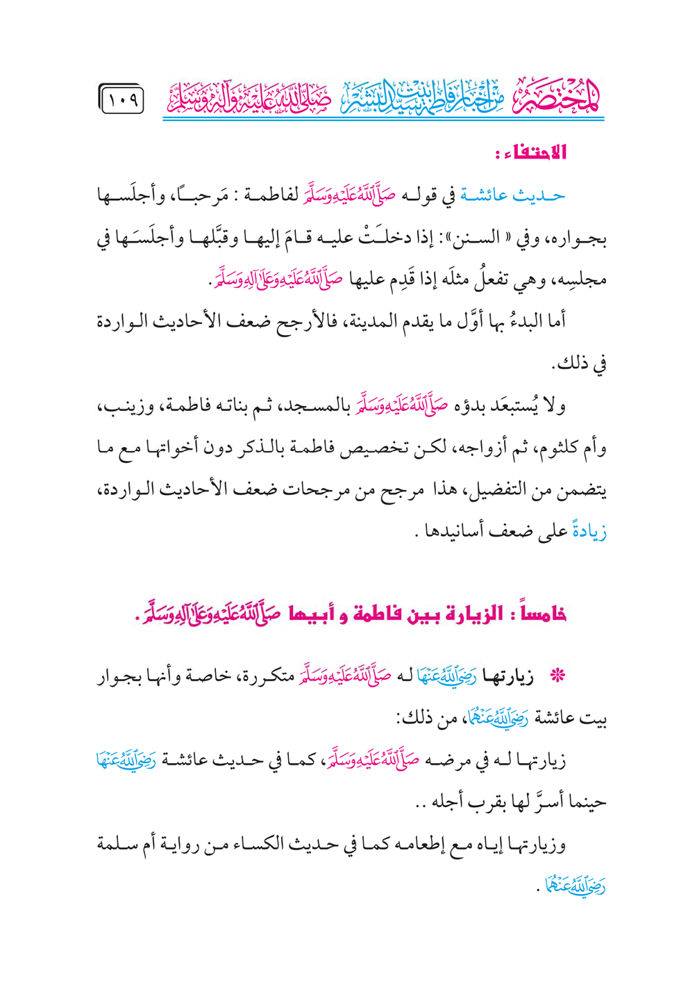 خامساً: الزيارة بين فاطمة وأبيها - صلى الله عليه وعلى آله وسلم -.