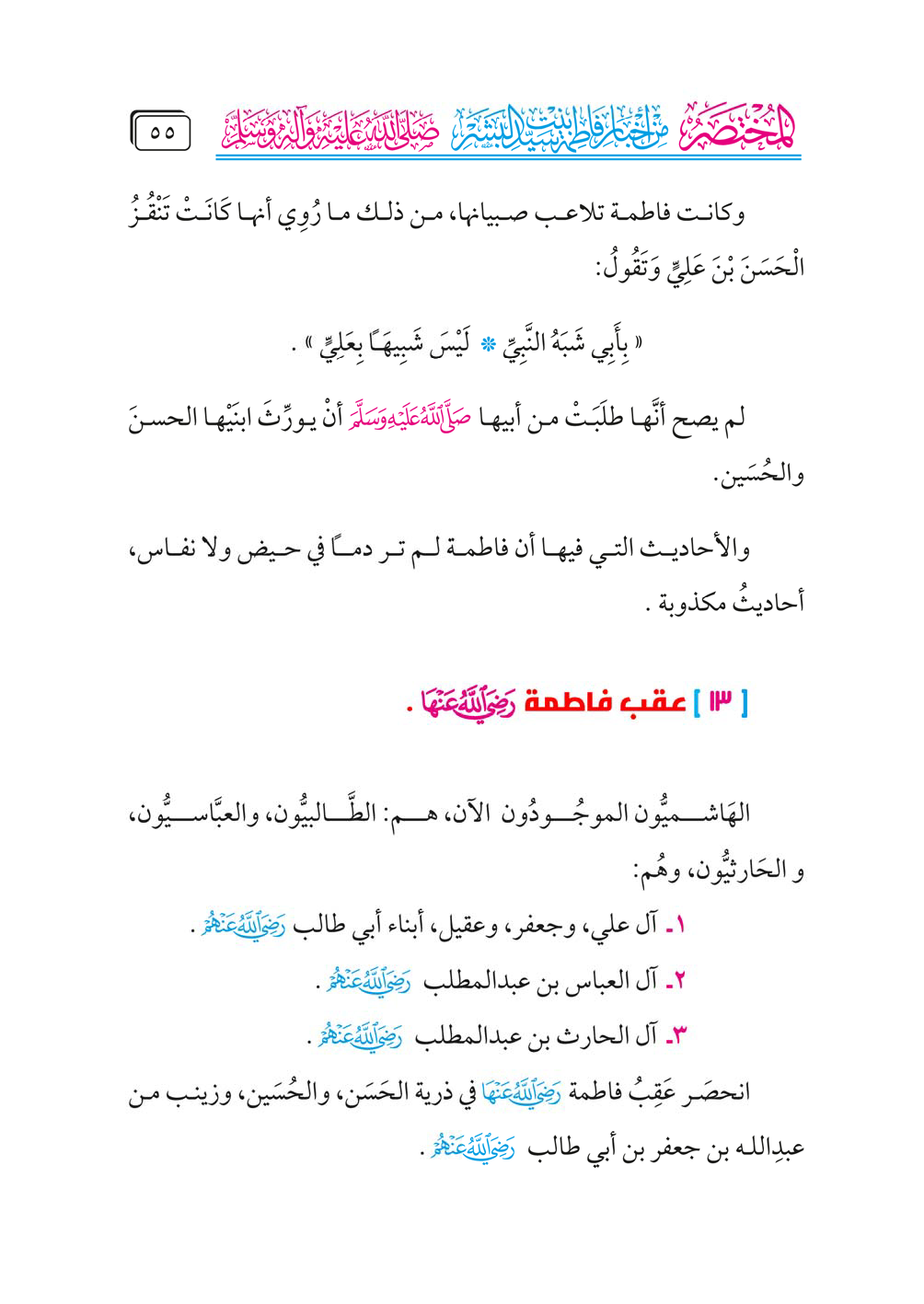 [١٣] عقب فاطمة - رضي الله عنها -.