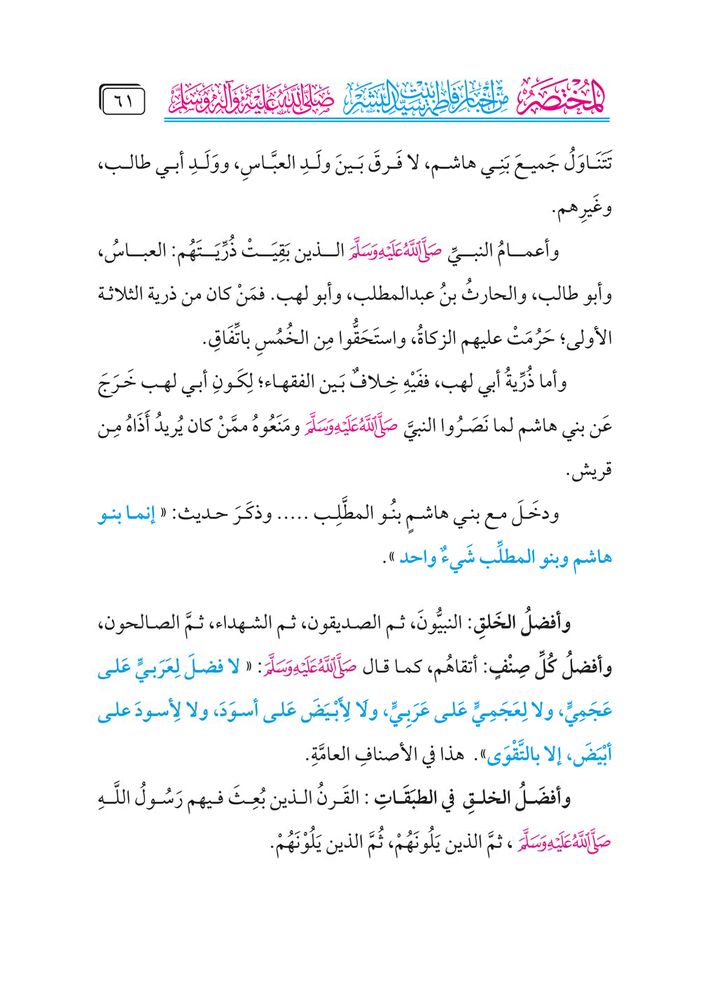 تَتَنَاوَلُ جَميعَ بَنِي هاشم، لا فَرقَ بَينَ ولَدِ العبَّاسِ، ووَلَدِ أبي طالب، وغَيرِهم.