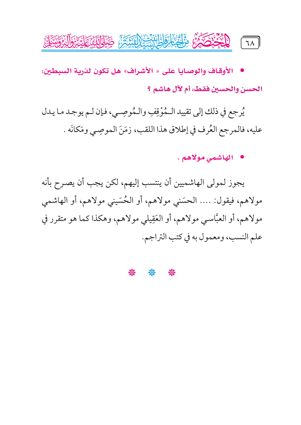 - الأوقاف والوصايا على «الأشراف» هل تكون لذرية السبطين: الحسن والحسين فقط، أم لآل هاشم؟