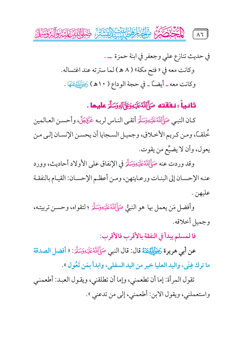 ثانياً: نفقته - صلى الله عليه وعلى آله وسلم - عليها.