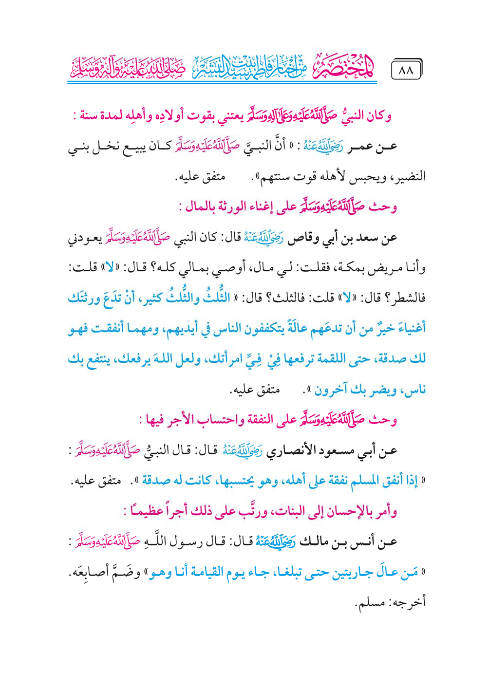 وكان النبيُّ - صلى الله عليه وعلى آله وسلم - يعتني بقوت أولادِه وأهلِه لمدة سنة: