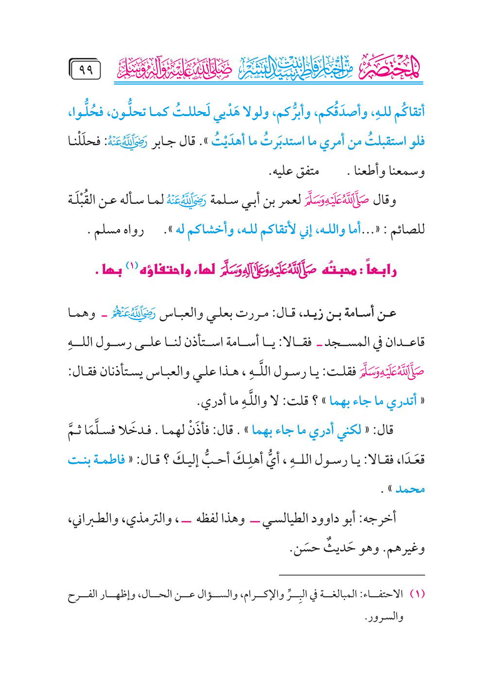 رابعاً: محبتُه - صلى الله عليه وعلى آله وسلم - لها، واحتفاؤه (¬١) بها.