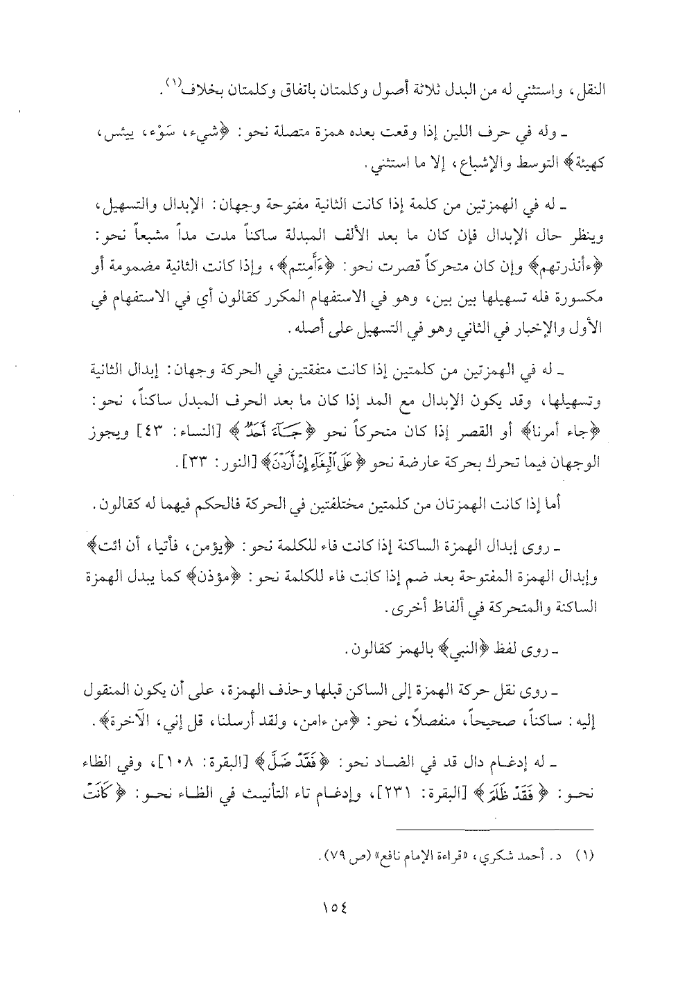 بِحُسْبانٍ وَالنَّجْمُ [5 و 6] لخلف بترك الغنة، وكذا ما أشبهه، (أي إذا وقع بعد النون الساكنة أو التنوين واو أو ياء).
