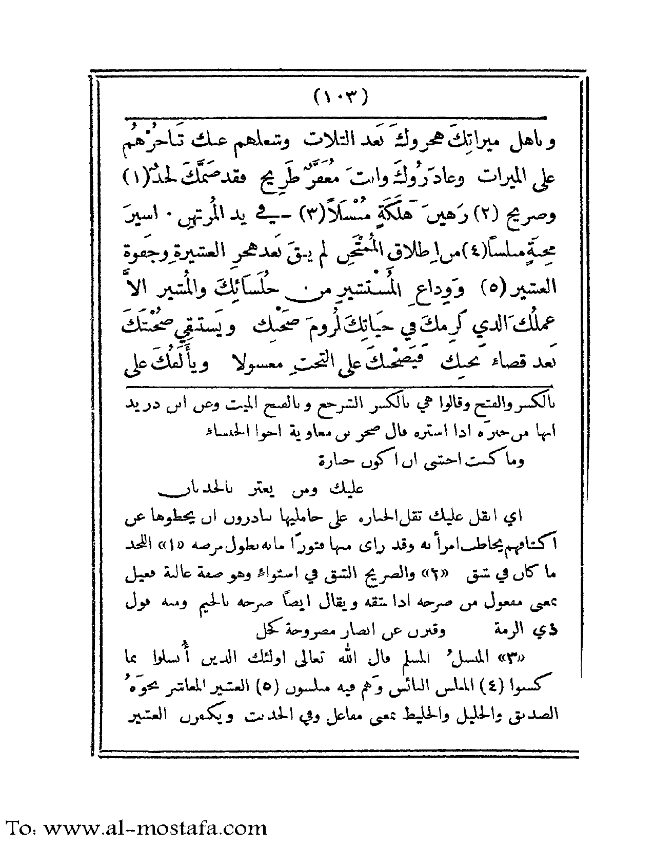 وبأهلِ ميراثكَ هجَروك بعدَ الثلاث وشغلْهم عنكَ تناجزُهم على الميراث وغادروكَ وأنت مُعفّرٌ طريح فقد ضمّكَ لحدٌ وضريح رهينَ هلكةٍ مُبسَلاً في يدِ المُرتْهِن أسيرَ محنةٍ مُبلساً مِن إطلاقِ الممتحِن. لم يبقَ بعدَ هجر العشيرةِ وجفوةِ العشير وودَاعِ المستشيرِ من جُلسائكَ والمُشير إلا عملُكَ الذي لزِمَكَ في حياتكَ لُزومَ صحبكَ ويستبقي صحبتكَ بعد قضاءِ نحبِك فيصحبُكَ على التّختِ مَغسولا ويألفُكَ على