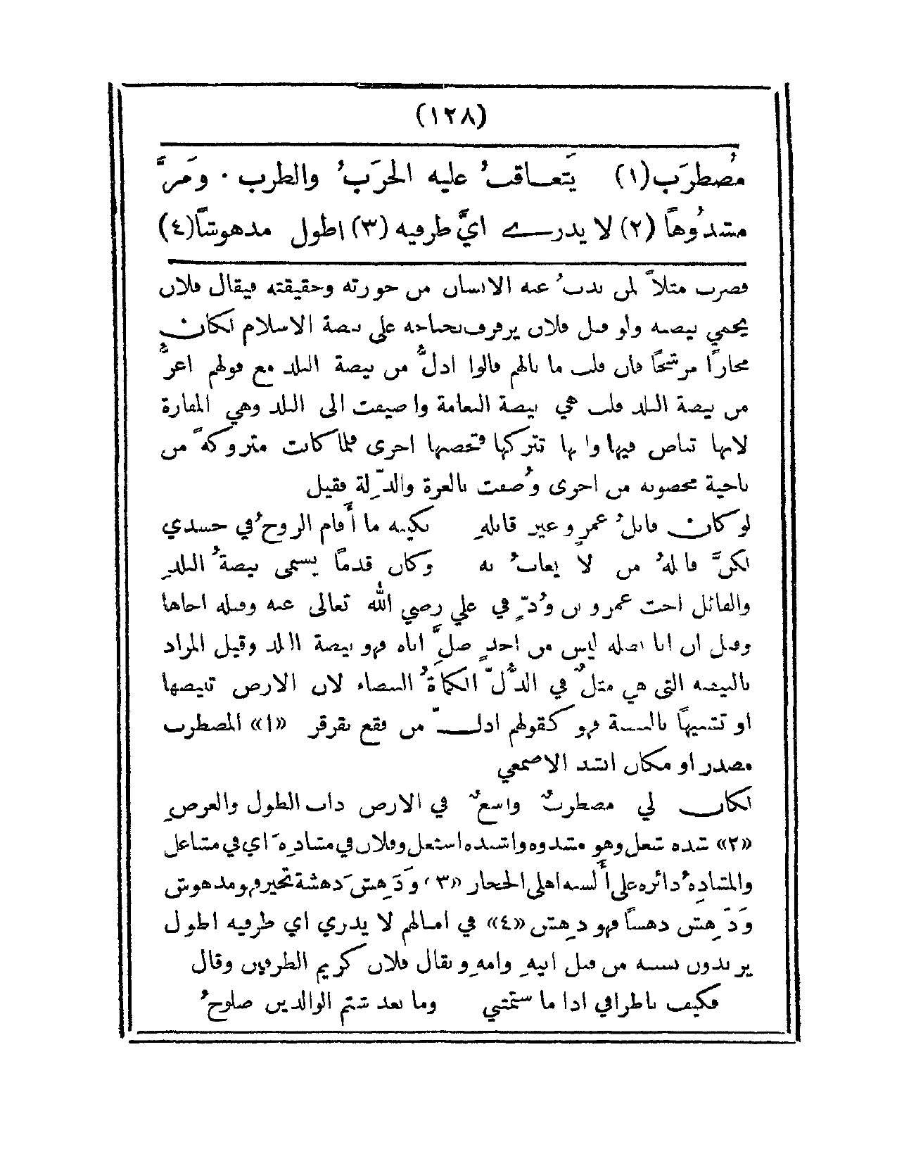 مضطرب، يتعاقبُ عليهِ الحربُ والطرَبْ. ومرَّ مشدوهاً لا يدري أيُّ طرفيهِ أطوَل مَدهوشاً.