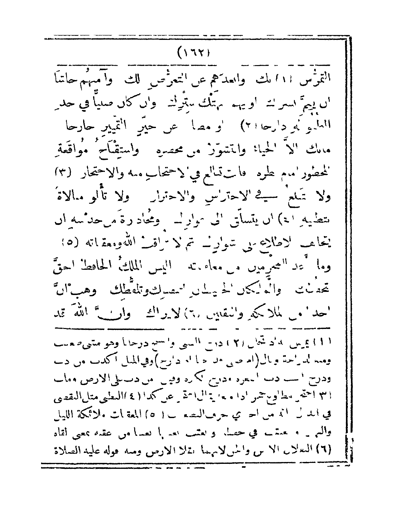 التمرس بكَ وأبعدَهم عنِ التعرضِ لك وآمنهم جاشاً أن ينم بسرك أو يهُمَّ بهتكِ سترِك وإن كانَ صبيّاً في حدِّ الطفولةِ دارِجا أو مصاباً عن حيِّز التّمييزِ خارجاً ما بكَ إلا الحياءُ والتشوُّرُ من محضرِه. واسِتقباحُ مُواقعةِ المحظورِ أمامَ نظرِه فأنتَ تبالغُ في الاحتجابِ منهُ والاحتجاز ولا تبالغُ في الاحتراسِ والاحتراز ولا تألو مبالاةً بتظنّيهِ أن يتسلقَ إلى عوارِك ومحاذرةً من حدسهِ أن يتجانفَ للاطّلاعِ على شوارِك ثمَّ لا تراقبُ اللهَ ومعقبّاته. وما أعد للمجرمينَ من مُعاقباته. أليسَ الملكُ الحافظُ أحق يتحفظِك والملكانِ الحفيظان لتنفسِك وتلفظِك. وهَبْ أنَّ أحداً من الملائكةِ والثَقلَيَن لا يراك وأنَّ اللهَ قد