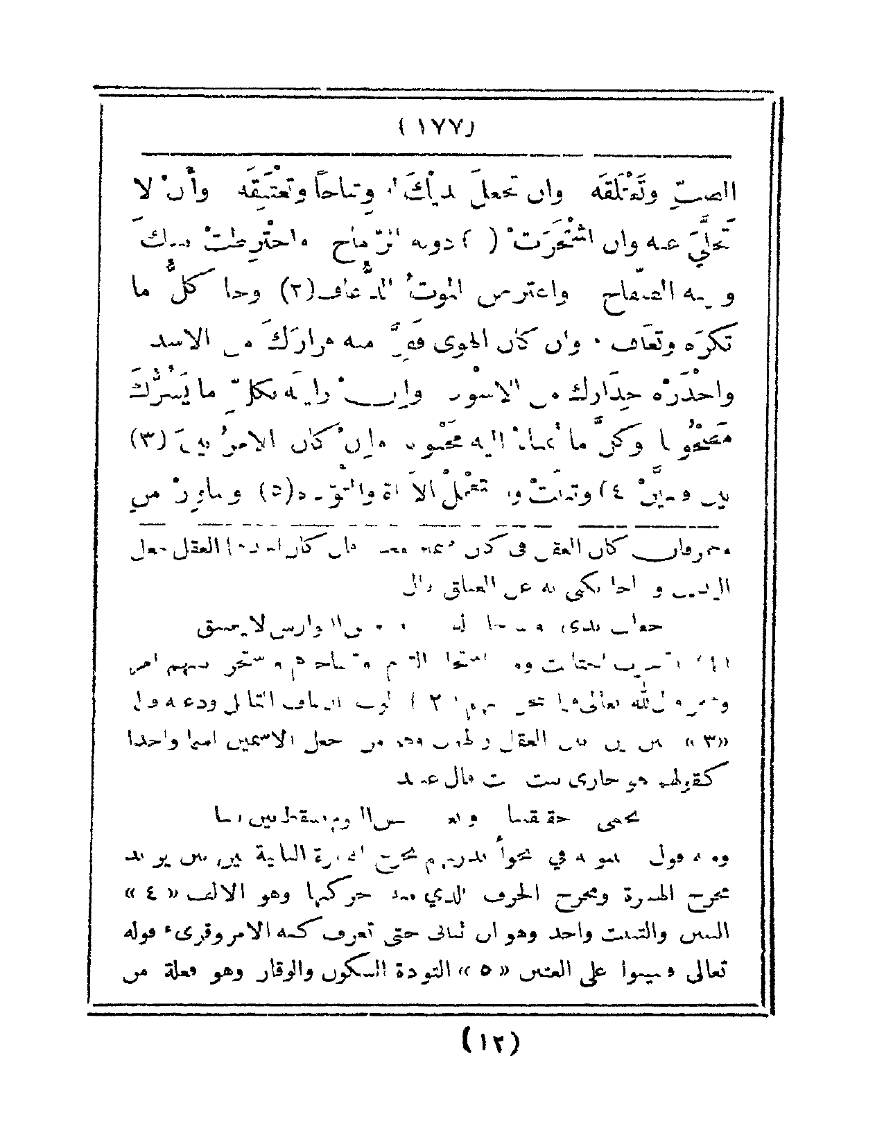 الصَّب وَتَعتلِقَهْ وأن تجعَلَ يَدَيْكَ لَهُ وِشَاحاً وتعتنِقَهْ. وَأنْ لا تخَلّى عَنهُ وإن اشْتَجرَتْ دُونَهُ الرِّماحْ واخْتُرِطَتْ بَيْنَكَ وبيَنهُ الصِّفَاحْ. واعترضَ الموتُ الذُّعافْ. وجاءَ كُلُّ ما تَكرَهُ وَتَعافُ. وَإنْ كانَ الهَوَى فَفِرَّ منهُ فِرَارَكَ منَ الأسَدْ. واحذَرْهُ حِذَارَكَ مِنَ الأسْوَدْ وإنْ رَأيْتَهُ بكُلِّ ما يَسُركَ مَصْحُوباً. وَكُلِّ ما تتمنّاهُ إليه مَجْنُوناً وَإنْ كانَ الأمْرُ بَينَ بَينَ فَتَبَيّنْ وتثّبتْ وَاسْتَعْمِلِ الأنَاةَ وَالتؤَدَةْ وَشاوِرْ مَنِ