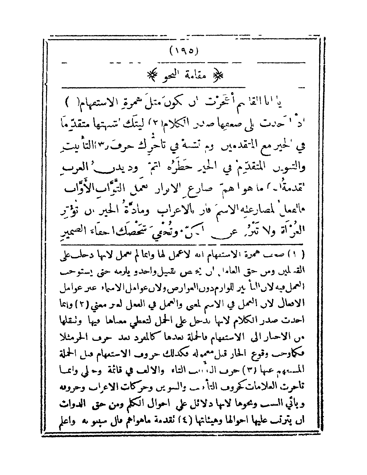 يا أبا القاسم أعَجَزْتَ أنْ تكُونَ مثلَ هَمْزَةِ الاستفهامْ إذ أخَذَتْ على ضَعفِها صَدْرَ الكَلامْ، لَيْتَكَ أشبهتَها مُتقَدِّماً في الخيرِ معَ المُتَقَدِّمينْ، ولمْ تُشْبِهْ في تأخركَ حَرْفَ التأنيثِ والتّنْوينْ. المُتقدِّمُ في الخيرِ خَطَرُهُ أتَمْ. وَدَيْدَنُ العَرَبِ تَقْدِمَةُ ماهُوَ أهمْ، ضَارعِ الأبْرَارَ بعَمَلِ التّوَّابِ الأوَّابْ. فالفِعلُ لُمضارَعتِهِ الاسمَ فازَ بالإعرابْ. ومادَّةُ الخَيْرِ أنْ تؤْثِرَ العُزْلَةَ وَلا تَبْرُزَ عَنِ الْكِنْ، وَتُخْفَي شَخصَكَ إخْفاءَ الضَّميرِ