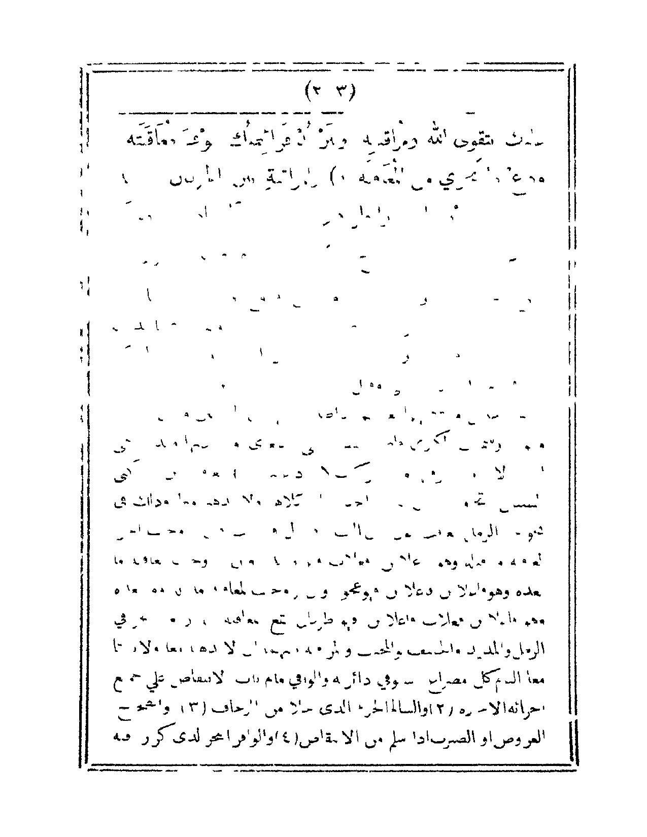 عليْكَ بتقوَى اللهِ ومراقبتهْ وَلتَرْعُدْ فَرائِصُكَ خَوْفَ مُعاقَبَتِهْ. وَدَعْ ما يَجرِي مِنَ المُعاقَبَةِ والمُراقَبَةِ بَينَ الحَرْفَينْ وَعدِّ عنِ الصَّدْرِ والعجُزِ والطّرَفَينْ. ما ضَرَّكَ إذا تَمَّ وَوَفَرَ ديِنُكْ. وَسَلِمَ وَصَحَّ يَقينُكْ. واتّصَفَا بالوُفُورِ