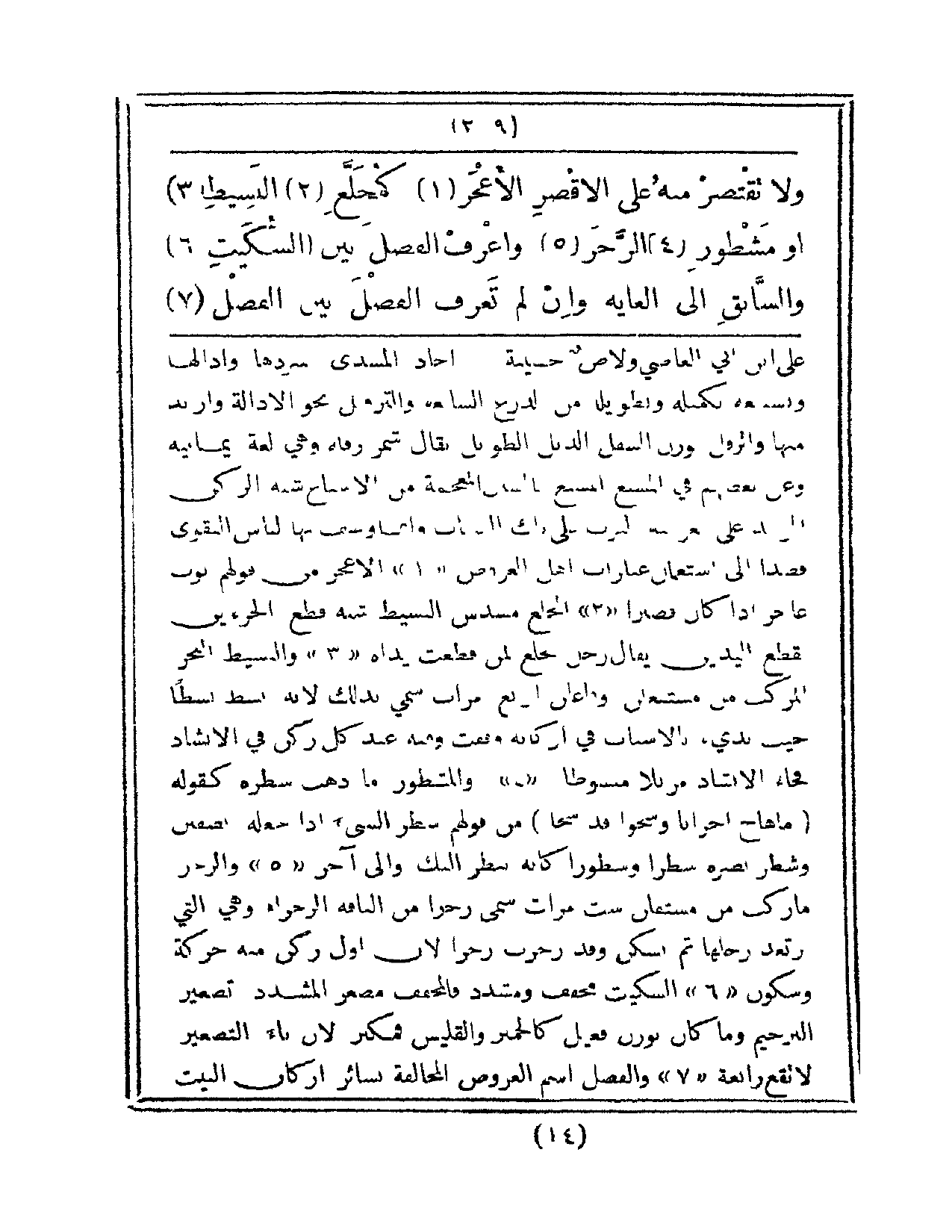 وَلا تقْتصرْ منهُ على الأقْصَرِ الأعْجَزْ، كَمُخَلّعِ البَسيطِ أوْ مَشْطُورِ الرَّجَزْ. وأعْرِفِ الفضلَ بينَ السكَيْتِ والسابِقِ إلى الغايَةْ. وإنْ لمْ تعرِفِ الفضْلَ بينَ الفصْلِ